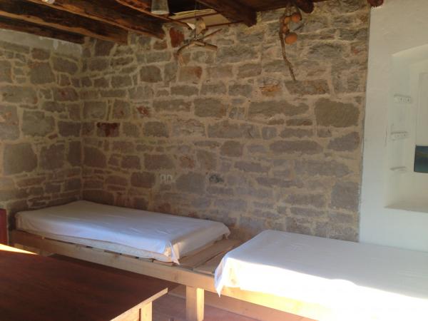 Apartament la parter - 60 m2 (zona principală cu bucătărie cu sufragerie și două paturi, o cameră cu pat dublu, toaletă, o terasă cu masă în aer liber - capacitate: 4 persoane) Casa are un bucatarie, o camera si o toaleta, curent electric (din energie solara - se pot incarca telefoane mobile si laptopuri) si apa potabila (din apa de ploaie). Pretul include o barca mica pentru inot cu motor (4m; 6cp). Transportul pe insulă cu barca durează 2 ore (barca și căpitanul pentru transport sunt gratuite dacă vii și pleci DUMINICĂ, oaspetele plătește doar combustibil costă aprox. 200 €) Bucurați-vă de Parcul Național Kornati, vizitați stâncile, scufundați-vă , urmăriți animalele și explorați Parcul Național - trăiți-vă vacanța diferit!
