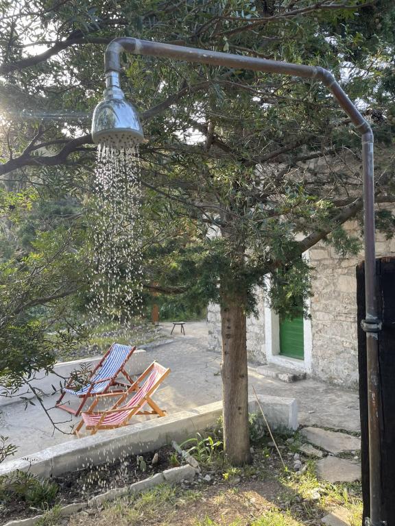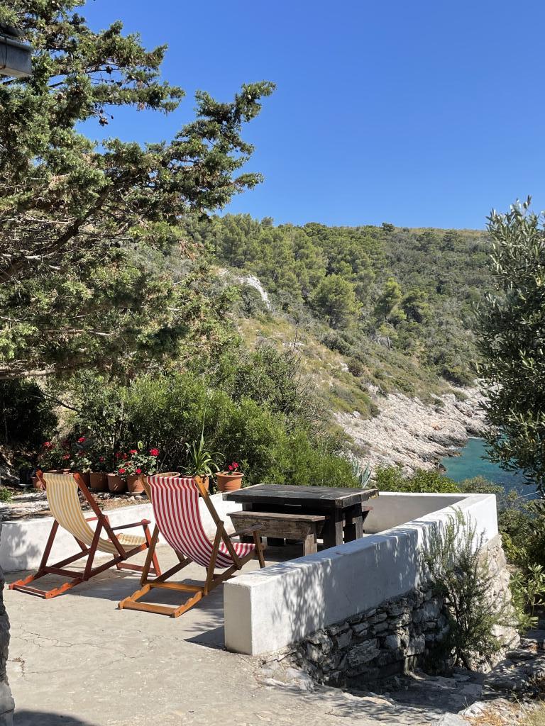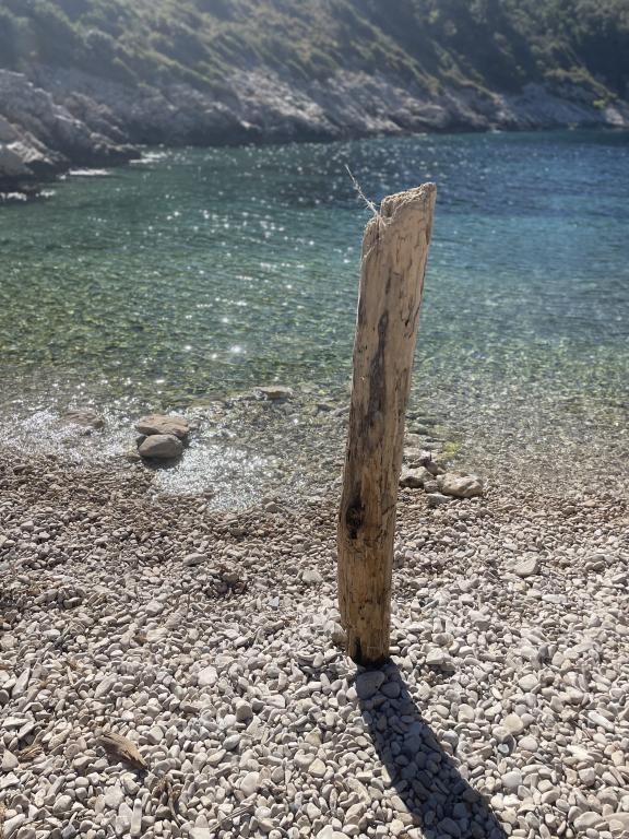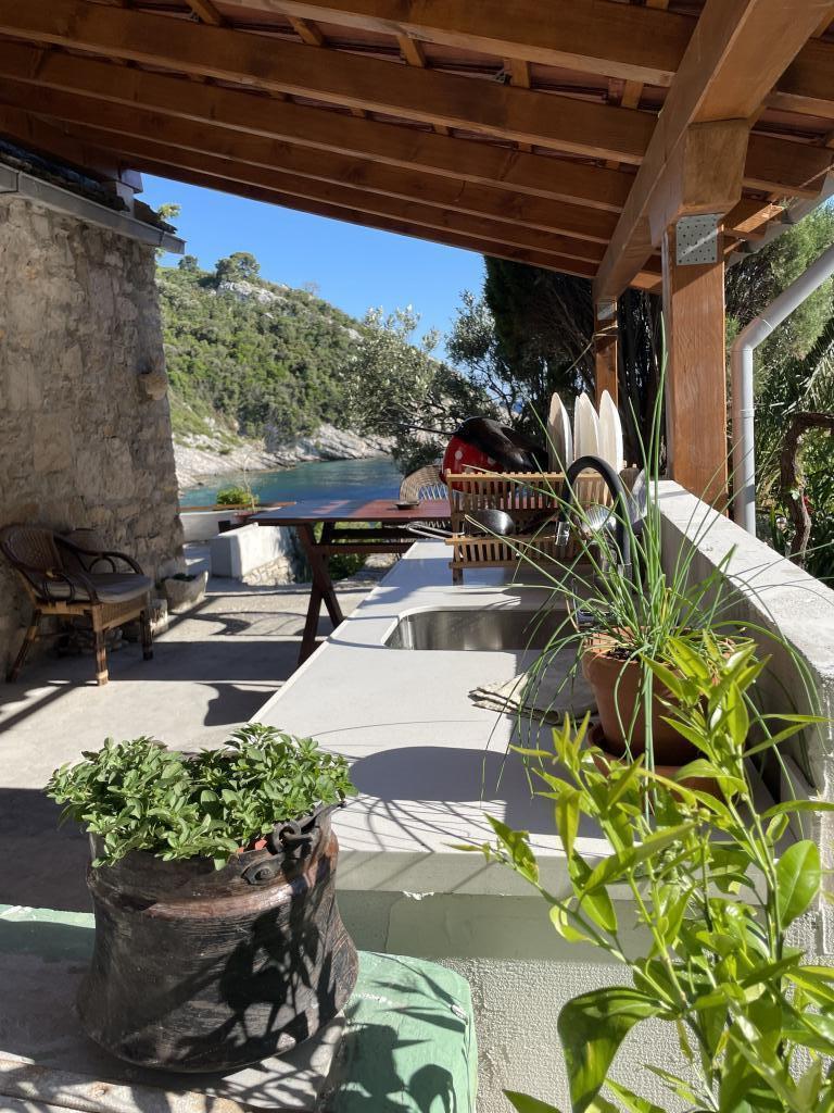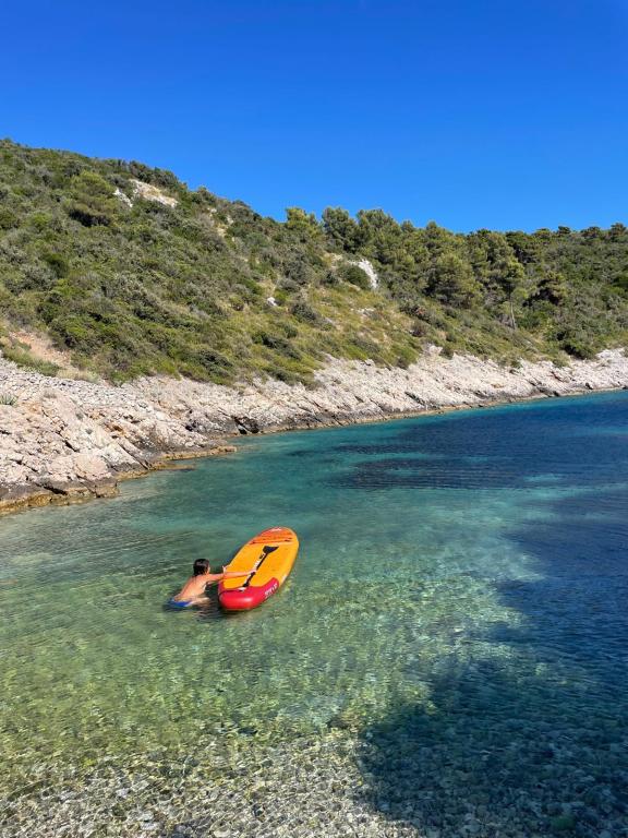 Casa este situată într-un golf liniștit, cu plajă cu pietriș, înconjurată de natură idilică și neatinsă și de aromele ierburilor aromatice mediteraneene indigene. Nu există drum de acces - mașina este parcată la aproximativ 300 de metri distanță, iar de la parcare la casă este la zece minute de mers pe jos pe o potecă pentru capre. Casa are 4 paturi. Electricitatea este generată de panouri solare și este suficientă pentru frigider, iluminat și încărcarea telefoanelor mobile, laptopurilor și a altor dispozitive comune. Apa provine dintr-un rezervor și poate fi folosită pentru gătit și duș. Câțiva litri de apă potabilă vă așteaptă în casă la sosire, iar restul pot fi achiziționați cu ușurință din magazinele de pe insulă. Bucătăria este dotată cu o sobă pe gaz și un șemineu care poate fi folosit și pentru grătar. Cu toate acestea, vă veți bucura cel mai mult de gătit în bucătăria în aer liber, cu vedere la mare și la natura înconjurătoare. Deoarece aceasta este singura casă din golf, oaspeții noștri se bucură de singurătate și liniște, în timp ce se află la doar aproximativ 50 de minute cu feribotul de toate facilitățile și atmosfera urbană a orașului Split.