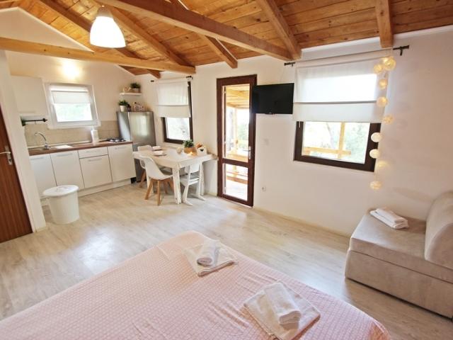 Casa este situată pe insula Mali Vinik. Este izolat. De pe terasa casei se vede o vedere spre Murter. Se află la 5 minute de mers cu mașina de Murter cu barca. Cabana dispune de bucatarie si este dotata cu aragaz, frigider cu congelator, toaleta, dormitor deschis cu pat 160×200, si pat suplimentar pentru o a treia persoana. Electricitatea din casa este de 220 V si se obtine cu ajutorul panourilor solare. Dușul este situat în afara casei. Casa este dotata cu televizor, receptor satelit, internet WiFi gratuit. Casa are un gratar, o zona cu sezlonguri pentru plaja. Are propria malul mării și plajă. Parcarea este asigurata si inclusa in pret. Transferul la casa si retur este asigurat cu barca de la proprietarul casei si este inclus in pret. Este posibil să închiriez o barcă. Pretul este de 30 euro pe zi. Animalele de companie sunt acceptate și costă 6 EUR pe zi.