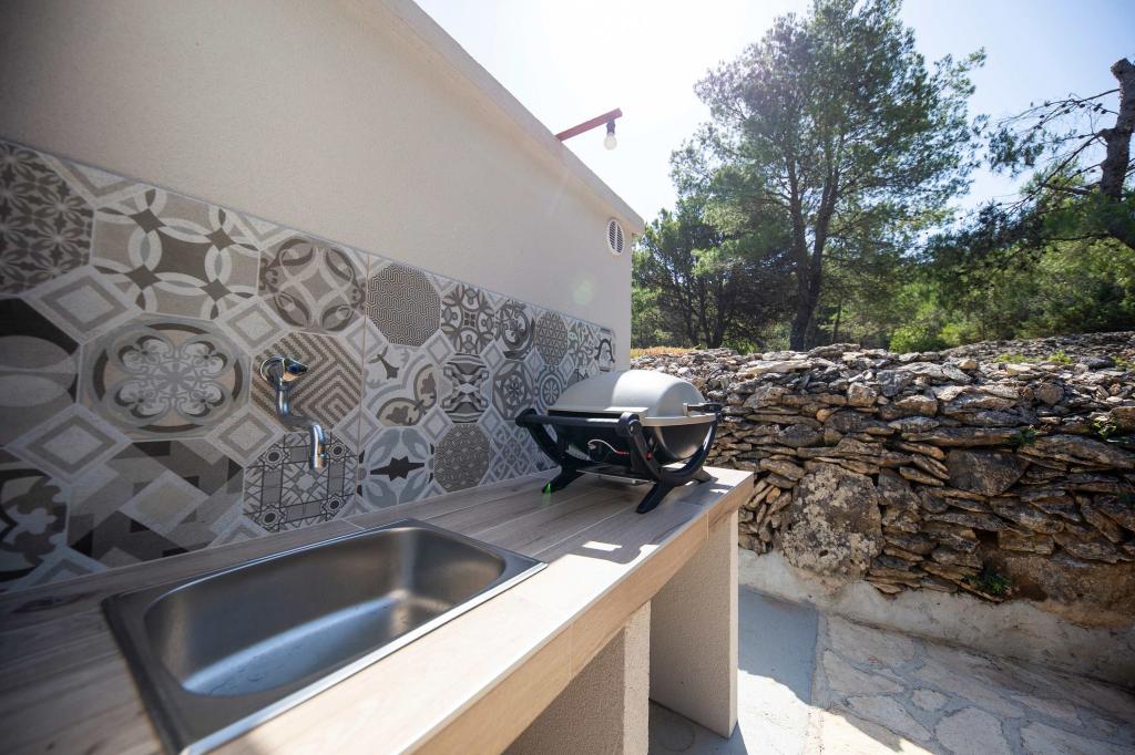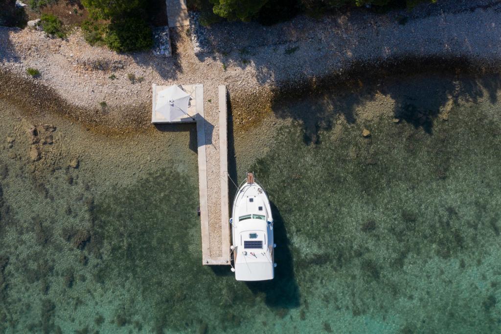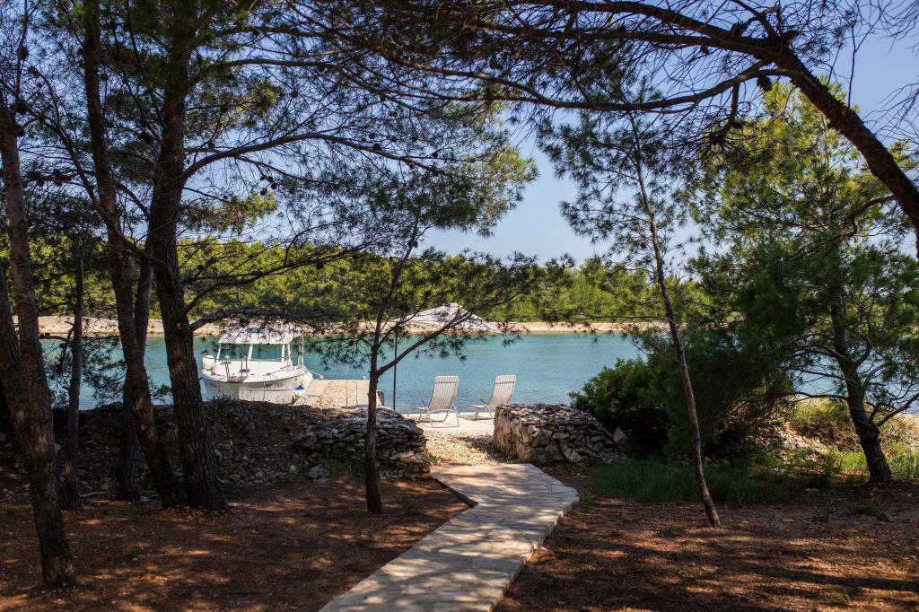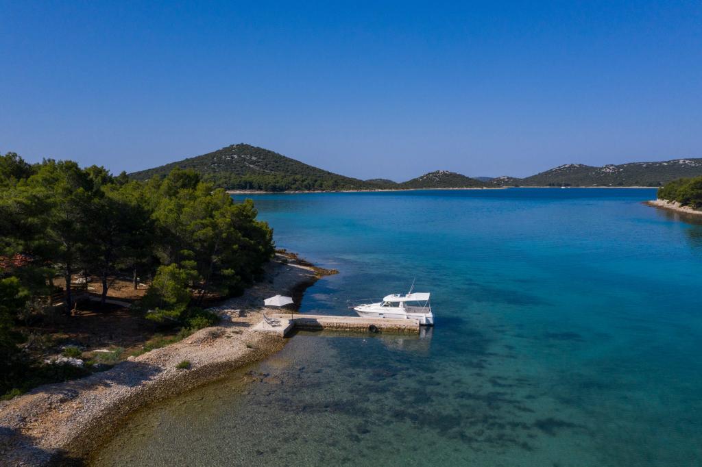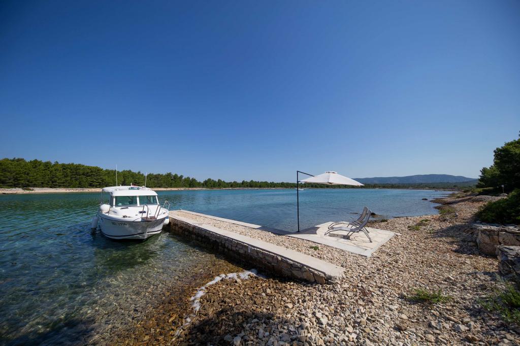 Casa de vacanță Modrave, situată în Golful Zečica, la 15 minute de Murter. Se află la 10 metri de mare și are propriul debarcader. Facilitatea poate fi accesată doar cu barca. Parcarea gratuită este oferită în Murter, la fel și transferul la casă. Casa are un dormitor cu pat dublu, o baie cu duș și o canapea extensibilă care poate găzdui încă două persoane. Bucătăria are frigider cu congelator și aragaz. Dispune de televizor cu receptor prin satelit, internet cu conexiune wifi și aer condiționat. Casa este alimentată cu energie solară și apă de ploaie, care este suficientă dacă este utilizată rațional. Animalele de companie sunt permise și se percepe o taxă de 5 euro pe zi.