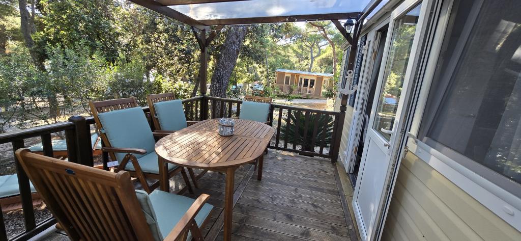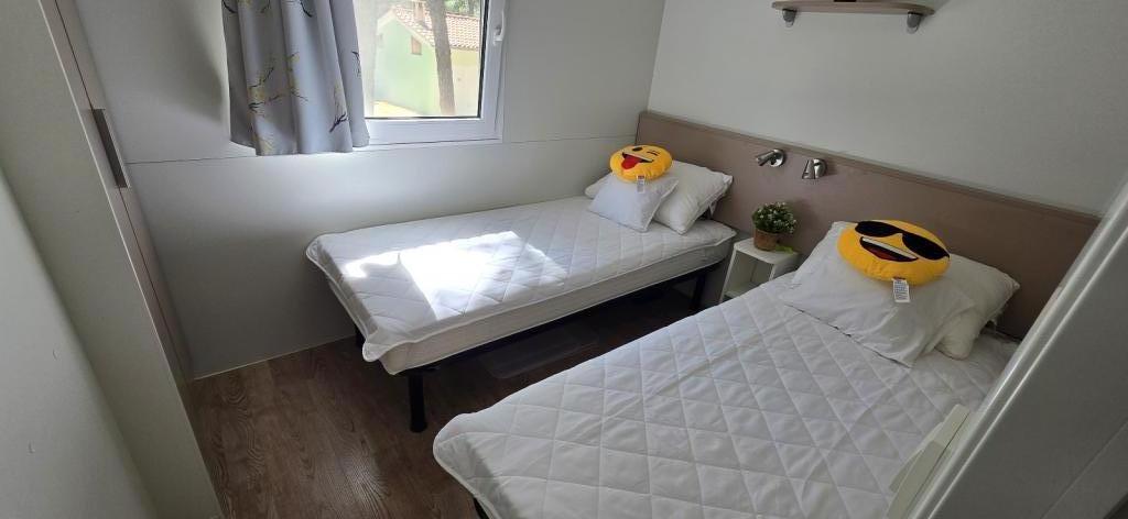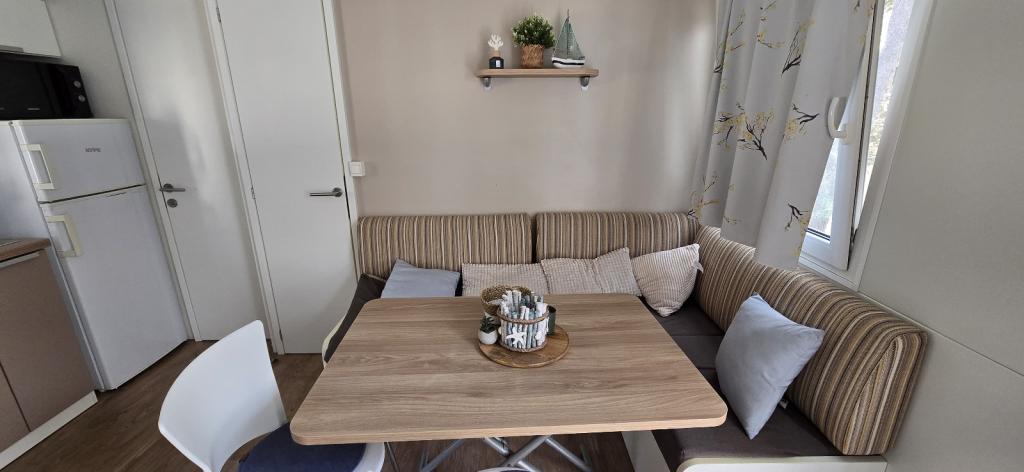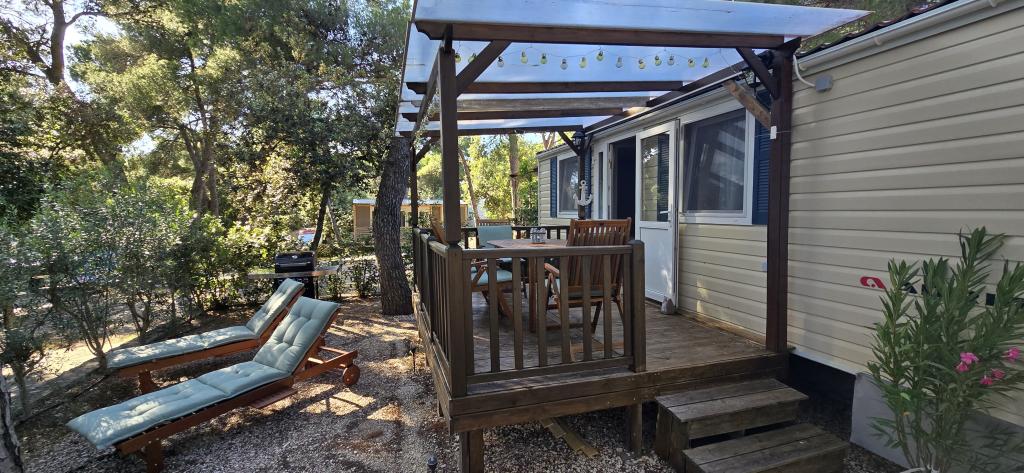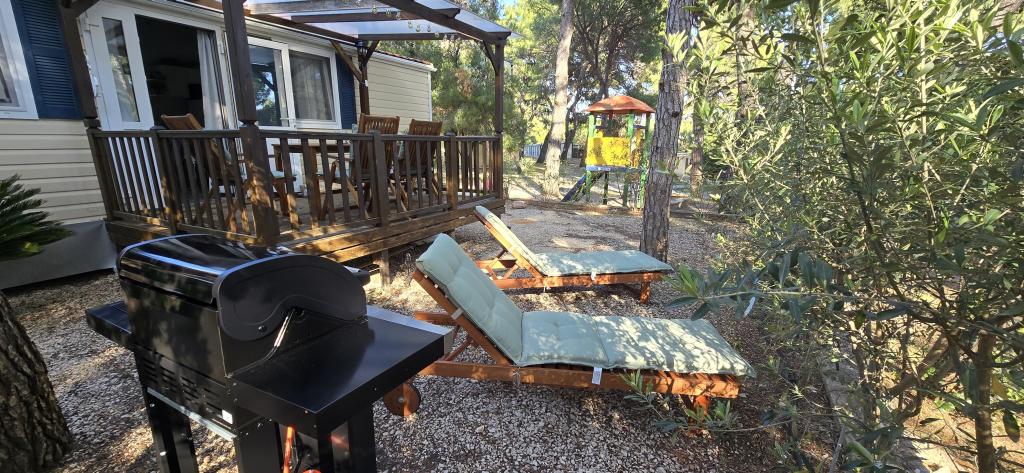 A sosit vara, rezervați-vă o întâlnire pentru 2025 Mobile Home Vomer Unitate pe plajă Mobile home complet echipată în Camp Kozarice Pakoštane Plaja 50 m Umbră plăcută chiar și în timpul celui mai puternic soare. 4+1 persoane 32 m2 + terasă 10 m2 Dormitor 1 1 pat dublu Dormitor 2 2 paturi single Living (canapea extensibilă) 2 băi sup duș exterior, TV Parcare gratuită (chiar lângă casă) WiFi gratuit (internet de mare viteză A1) Aer condiționat Grătar Lenjerie de pat, prosoape Bucătăria are plită cu inducție, frigider cu congelator, cuptor cu microunde, prăjitor de pâine, fierbător, vase... Un loc de relaxare pe șezlonguri confortabile vă așteaptă pe terasă. Există un parc în camping, iar în apropiere se află o mașină de spălat și un uscător de rufe. Restaurant și cafenea în tabără la câteva minute de mers pe jos. Aproape de oraș (3 minute de mers pe jos), promenadă, restaurante, cafenele, farmacie, magazine,