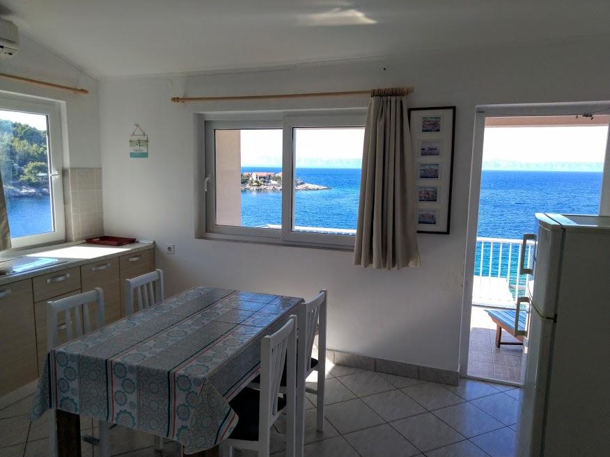 Apartamentul se afla intr-o locatie foarte linistita, intr-un mic golf cu plaja privata, care se afla la aproximativ 20 m jos pe scari. Terasa imensa si privelistea de pe terasa este superba. La câteva minute de mers cu mașina până la Vela Luka. Apartamentul este spatios, curat, iar doamna Fani s-a asigurat ca nu ne lipseste nimic. Excelent pentru odihnă și relaxare din viața de zi cu zi.