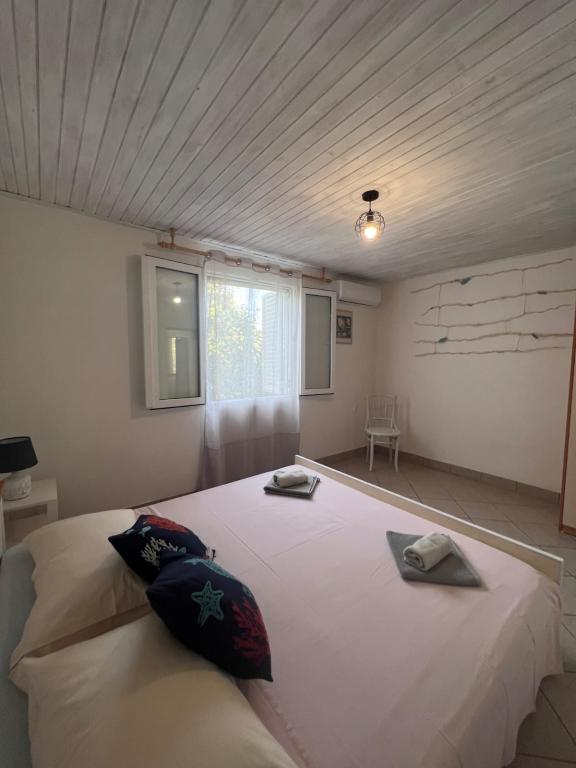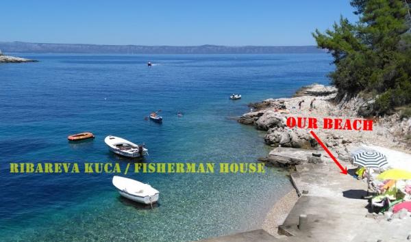 Sătul de ritmul agitat al vieții zilnice, găsiți liniște și relaxare în frumoasa CASĂ PESCARULUI. Situată într-un mic golf retras, între măslini și adiacentă unei plaje private, casa este formată din 4 apartamente, dintre care: 1) apartament studio pentru 2+1 persoane, 2) un alt apartament studio la parter pentru 2 persoane. 3) apartament cu două camere pentru 4+1 persoane 4) apartament mai mare cu două camere pentru 4+2 persoane. Posibilitatea de a amplasa paturi suplimentare. Fiecare apartament are propria intrare separată. Toate apartamentele sunt complet dotate cu electricitate și apă, precum și cu strictețe (vasele, lenjerie de pat, prosoape etc.). PENTRU MAI MULTE POZE ȘI INFORMAȚII DESPRE FIECARE APARTAMENT, TRIMIT UN LINK CU POZE PRIN E-MAIL SAU WAPP. Coborâți scările de piatră care vă duc direct la plaja privată, la doar 18 m distanță. Plaja este stâncoasă și are o intrare cu pietriș în mare, care se extinde treptat într-o mare mai adâncă și cristalină, motiv pentru care plaja este foarte potrivită atât pentru copii, cât și pentru adulți. ȘEZLUNGI GRATUITE pe plajă