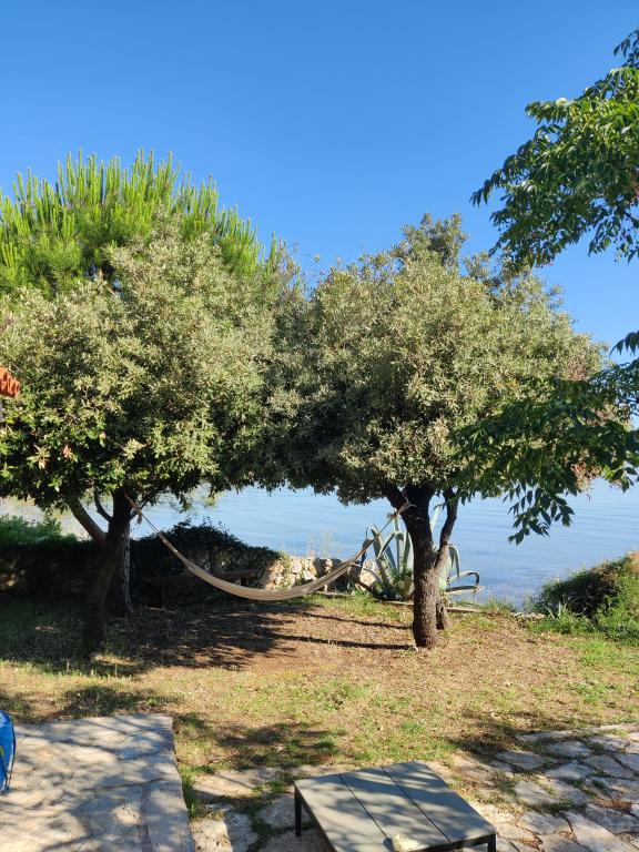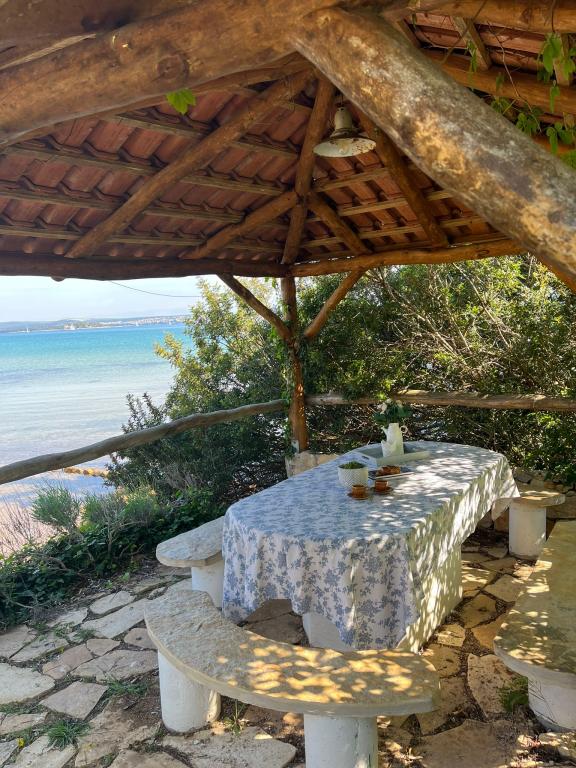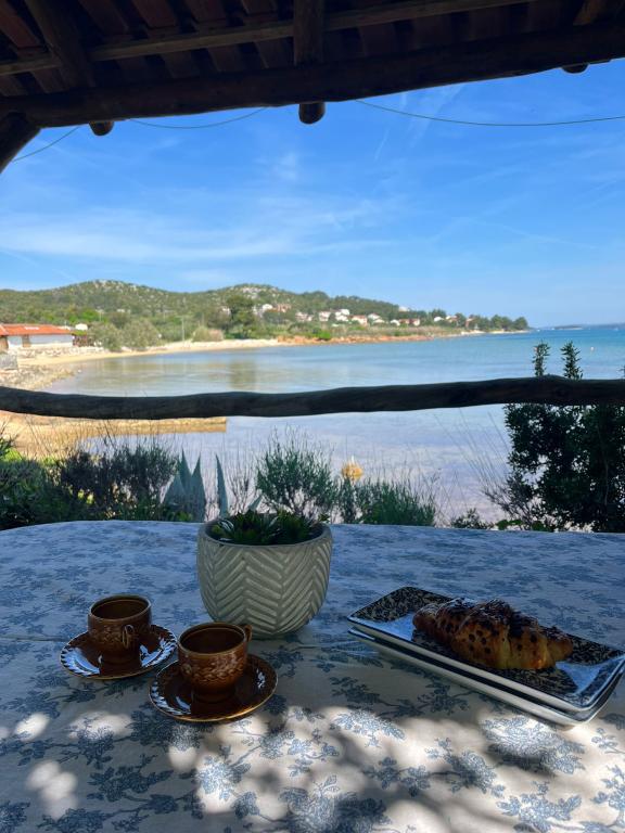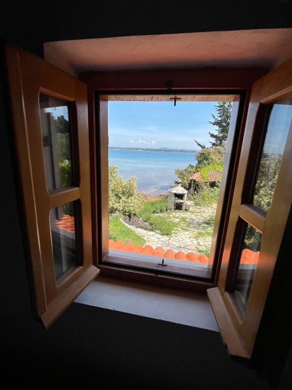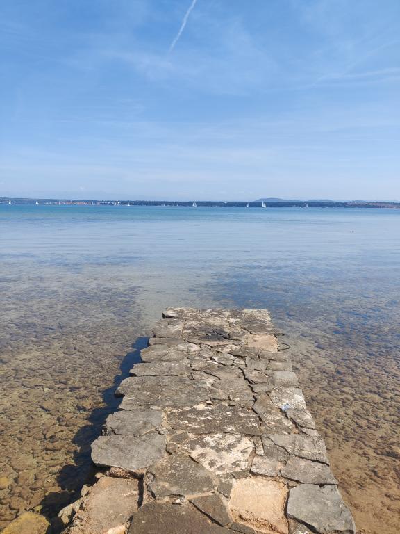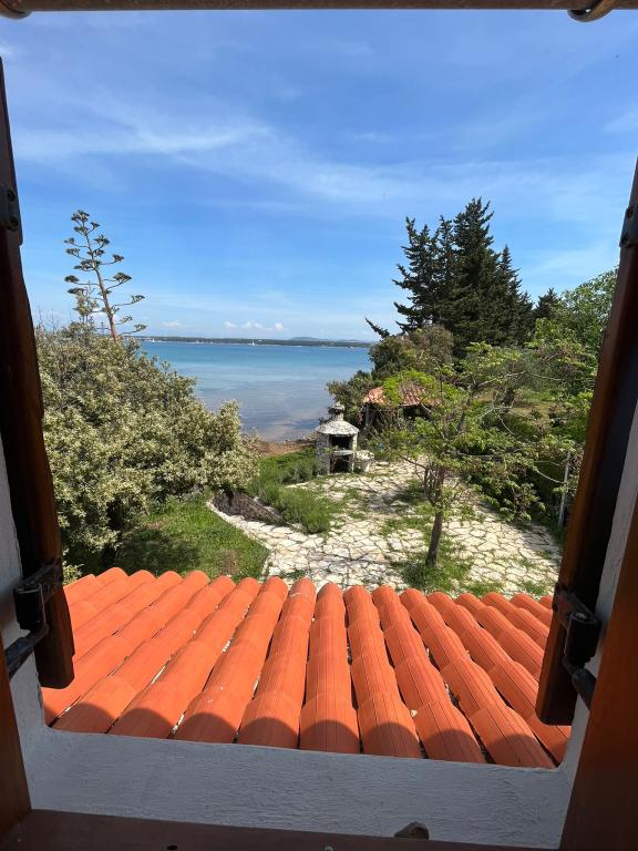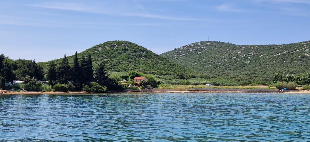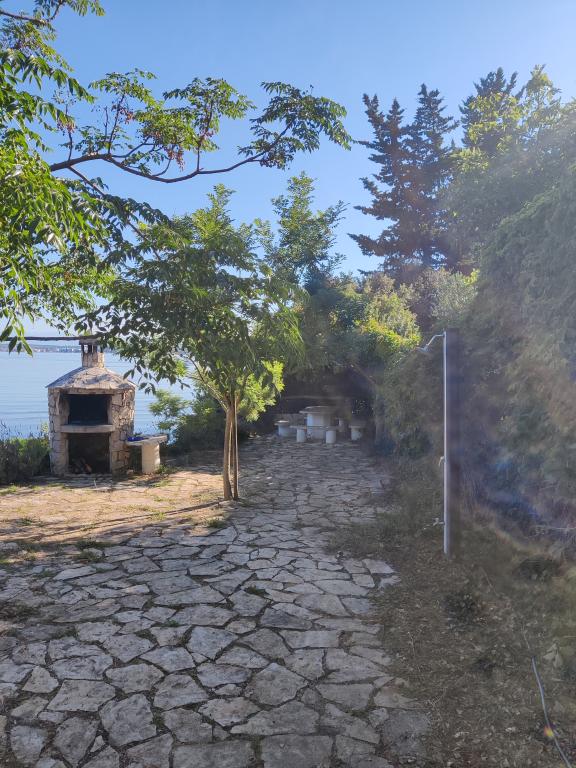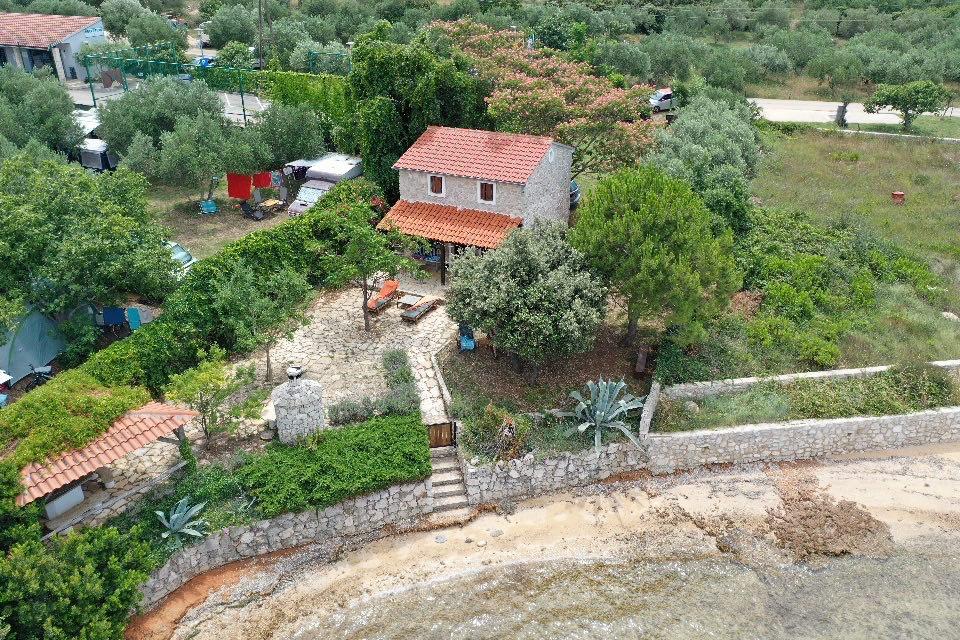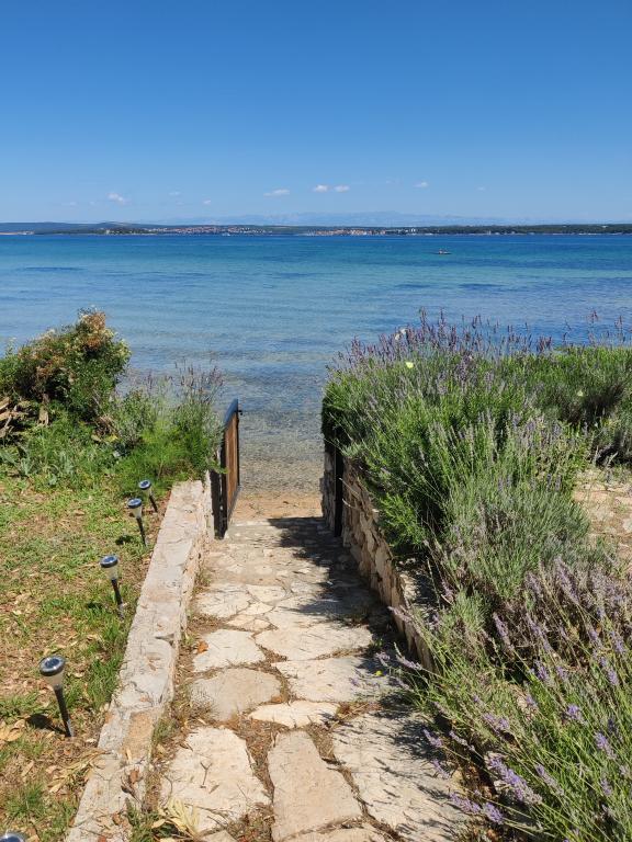 Casa este situată la sud de centrul orașului Tkon, pe insula Pašman, chiar lângă drum. Puteți intra cu mașina prin poartă și vă puteți parca mașina chiar lângă casă. Lângă casă se află o tabără de nudiști, ascunsă vederii de plante cățărătoare. Prima clădire de pe cealaltă parte se află la 50 m distanță. Casa este situată la 10 m de mare și de plaja cu nisip. Marea are aproximativ o jumătate de metru adâncime, cu un fund nisipos, ideal pentru copii. În fața casei se află o terasă acoperită din lemn, cu masă și bănci, unde vă puteți bucura de umbră și puteți lua prânzul, iar chiar lângă ea se află un grătar de piatră. Există, de asemenea, un baldachin chiar în fața casei care oferă umbră. Există un duș exterior pe terasă.
