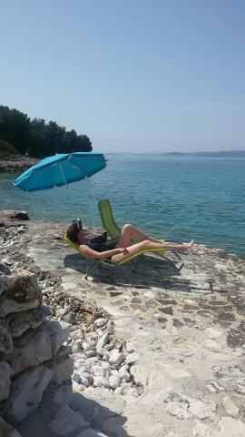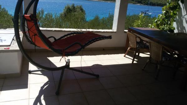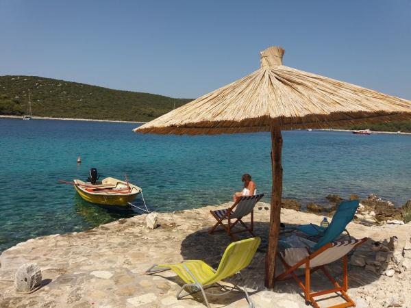 Am petrecut o dată uimitoare în această casă. Dacă sunteți în căutarea unui timp liniștit, relaxant din turism, trebuie să reveniți la civilizație (30 minute cu mașina), alegere bună. Doar câțiva pași de la mare, acces ușor la apă, frumos "umbrelă stil hawaian " vă oferă umbra în timpul șederii la mare. Și dacă doriți să vă bucurați de băutură rece din frigider, aveți nevoie de doar 30 de secunde pentru al ridica din frigider. Recomand sa fiu de acord cu sosirea proprietarului in urmatorul golf (Zizanj) si sa folositi digul local al restaurantului pentru a va muta geamandurile de la masina prin barca proprietarului si sa folositi acest mod pentru a ajunge de la cel mai apropiat teren pana la casa. Înseamnă că va trebui să purtați pungi în mâinile dvs. la doar 50 de metri. Marele avantaj al dușului în aer liber - nu va trebui să utilizați cel de interior, cum să vă faceți duș în afară și să priviți la mare. A doua recomandare - utilizați frigiderul numai în caz contrar, veți fi încurcați cu electricitate, dar este suficient de mare pentru a stoca toate alimentele necesare pentru a fi în centrul frigului. Proprietar foarte prietenos și de ajutor. Dacă vă place activități - aduceți ceva de genul (bord) sau o bicicletă montană pentru o plimbare plăcută pe insulă. Bicicleta poate fi folosită și pentru a merge la Tkon pentru cumpărături.