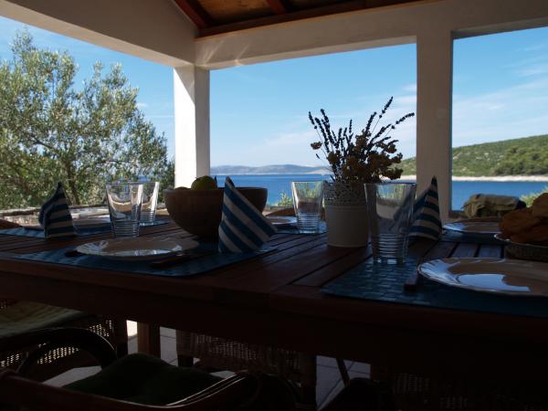 Noi am fost 2 familii si ne-am petrecut săptămâna de necrezut acolo. loc pentru super toți cei care caută un loc destul și a vieții private pe plajă. dormitoare frumos, bucătărie spațioasă și bine dotată, dar cele mai multe ori ne-am petrecut pe o terasa mare umbra, cu vedere frumoasă la golf. Acces facil la apă, nici pantofi necesar, avantajul de duș în afara pe care am folosit în loc de baie regulat în interior. Nu este ușor să se mute tot personalul de la mașină la casa, trebuie să meargă de mai multe ori din punctul în care vă parcați mașina la casa de pe traseu îngust, stâncos, numărul de bucle depinde de capacitatea de mâini și de volumul de personal ai adus, dar am găsit calea mai ușoară și a cerut proprietarului să parcheze 50m barca lui de la mașinile noastre și de a folosi o cale navigabilă pentru a muta saci. Cred că vor oferi acest nou mod de a muta altora, lucruri oaspeții de acum. Proprietarul este foarte util și prietenos, vorbind bine engleza. Vă recomandăm să aducă cea mai mare parte a produselor alimentare și a limita deplasările în Tkon pentru a cumpăra produse alimentare, se deplasează cu mașina pe insulă pe drumuri stâncoase nu este foarte confortabil. Puteți cumpăra pește de la fishernan locale de 2-3 ori pe săptămână.
