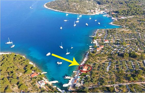 Facilitate complet utilată, cu electricitate de 12V și panouri solare. Situată pe insula Žut, în golful Dragišina. Dispune de două camere, bucătărie, cameră de depozitare și baie, grădină mare cu măslini, terasă, grătar și duș exterior.