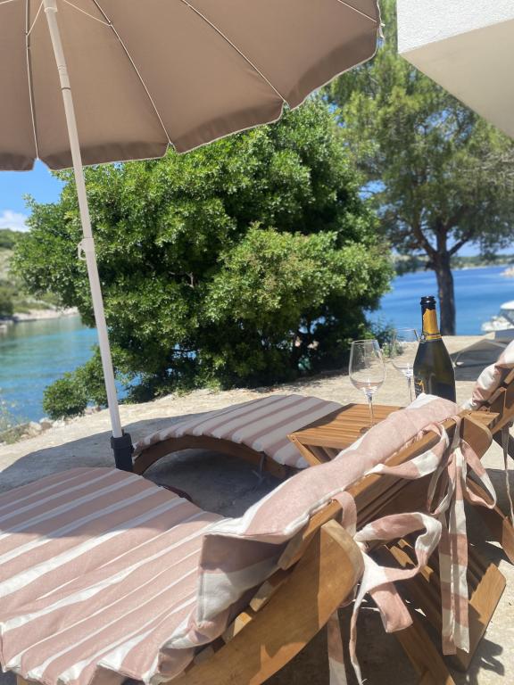 Casa de vacanță „Levina”, nou construită, este situată într-o oază de verdeață și liniște, un loc perfect pentru relaxare și bucurie. Este decorată în stil rustic. Se află la 10 m de mare, în golf. Balconul oferă o priveliște frumoasă asupra mării. Golful este plin de verdeață, este ascuns, vă veți simți separați de lume, copleșiți de pace și frumusețe. Mai sunt doar câteva alte case în golf. Casa are două dormitoare, o baie cu duș, un balcon cu o priveliște frumoasă și o terasă exterioară cu grătar. Casa este dotată cu aparat de aer condiționat portabil și ventilator. La figurat vorbind, apa de pe insulă este aur, așa că trebuie folosită rațional. Apa provine din izvoare naturale, apă de ploaie. Apa nu este de băut, poate fi folosită pentru duș și spălat. Restaurante de top, Marina ACI și o piață se află în golful vecin. Aveți la dispoziție aproximativ 20 de minute de mers pe jos de-a lungul stâncilor sau cu barca pentru a ajunge acolo. Vă aflați literalmente la intrarea în Parcul Național Kornati. Cel mai bine este să cumpărați alimente și apă potabilă în portul de plecare.