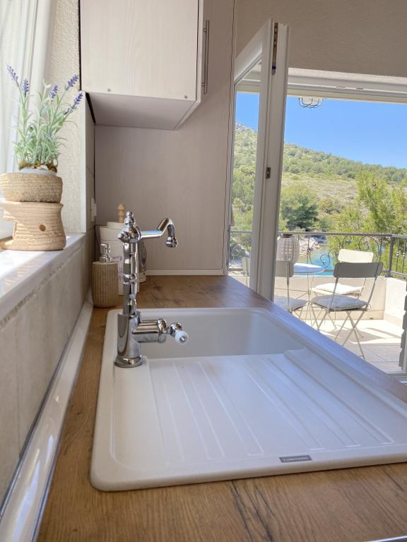 Locația și casa sunt grozave. Pot spune că este un Robinson foarte confortabil, deoarece casa este practic nouă și foarte frumos mobilată... fotografiile sunt ceea ce vă așteaptă. Ca o mică opțiune de rezervă, aveți o plimbare de 15 minute cu barca cu pedale până la magazinul din port sau o plimbare de 700 m de-a lungul coastei, de-a lungul stâncilor, și există deja o potecă. Sunt 6 case în golf, dar aceasta este singura de închiriat și am fost singuri. Aveți chiar și apă caldă la duș și vâsle... pe scurt, tot ce aveți nevoie și proprietari foarte drăguți, prietenoși, care vă aduc la locație cu o barcă rapidă.