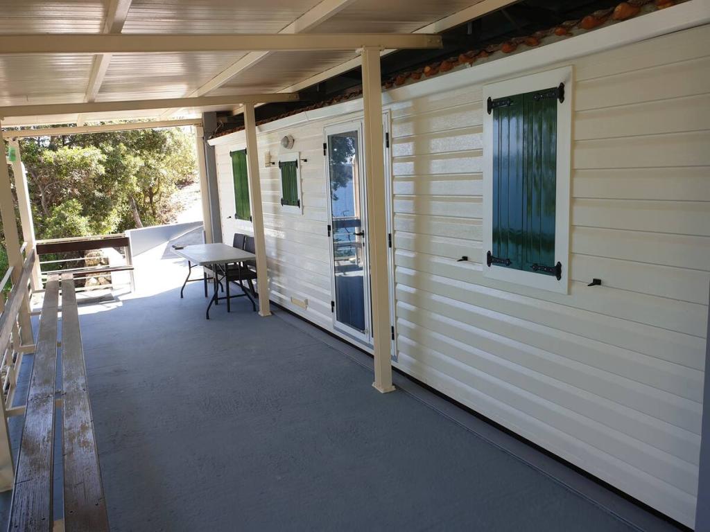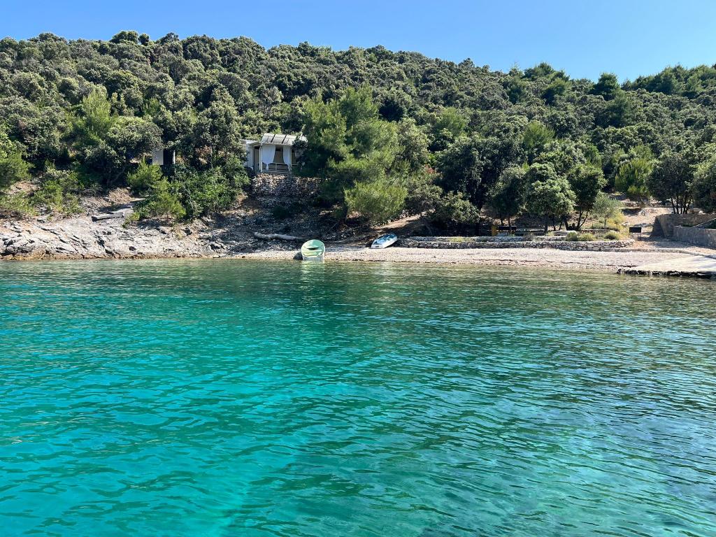 Casa mobilă ANTE este situată în golful liniștit Babin Bok, la doar 10 metri de mare, cu un balcon care oferă o vedere frumoasă la mare. Casa este perfectă pentru relaxare și distracție și este formată din două dormitoare, o baie cu duș, o bucătărie în aer liber și o terasă spațioasă cu grătar. Datorită izolării sale, oferă liniște și intimitate completă. Apa din cabană nu este potrivită pentru băut, dar poate fi folosită pentru duș și spălat. În golful învecinat există restaurante de top, un port de agrement ACI și o piață, la care puteți ajunge ușor cu barca cu motor, care vă stă la dispoziție.