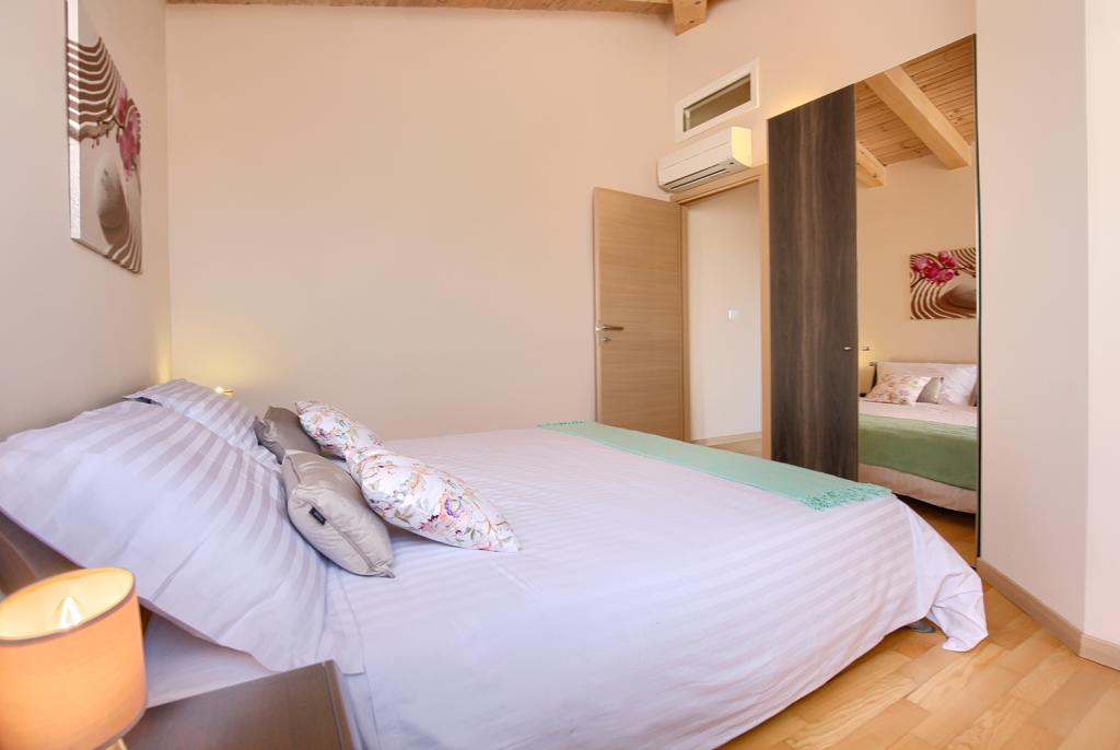O casă terasată din satul Volme lângă Banjole oferă oaspeților un sejur plăcut și frumos. Este dotata cu mobilier de calitate si fiecare camera dispune de aer conditionat, ceea ce asigura un sejur placut in zilele calduroase de vara (3 aparate de aer conditionat). Casa are doua dormitoare pentru 2 persoane, doua toalete, o bucatarie cu living unde este o canapea extensibila pe coltar, foarte confortabila pentru 1 persoana. Există un pătuț pliant într-un dormitor. Casa are si o curte cu gratar care este folosita doar de catre oaspeti, iar cladirea are si o frumoasa piscina care este folosita si de cladirile din jur, majoritatea weekend-ului. Marea este la doar 300 m distanță, iar la doar 3000 m distanță se află RT Kamenjak cu cele mai frumoase plaje din Istria. În sat există multe piste de biciclete, așa că puteți ajunge și la Premantura cu bicicleta. Pentru animalele de companie, taxa suplimentară este de 60 e pentru întregul sejur.
