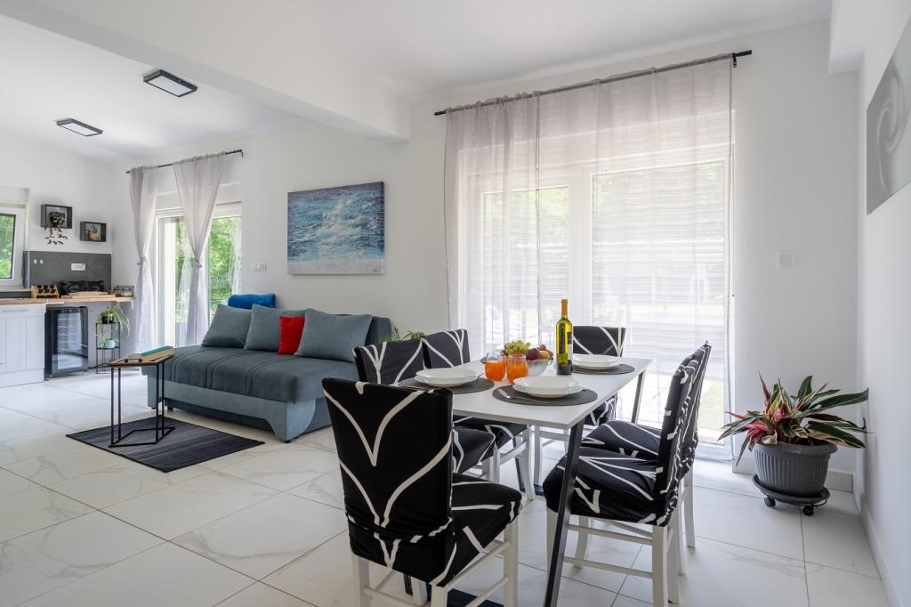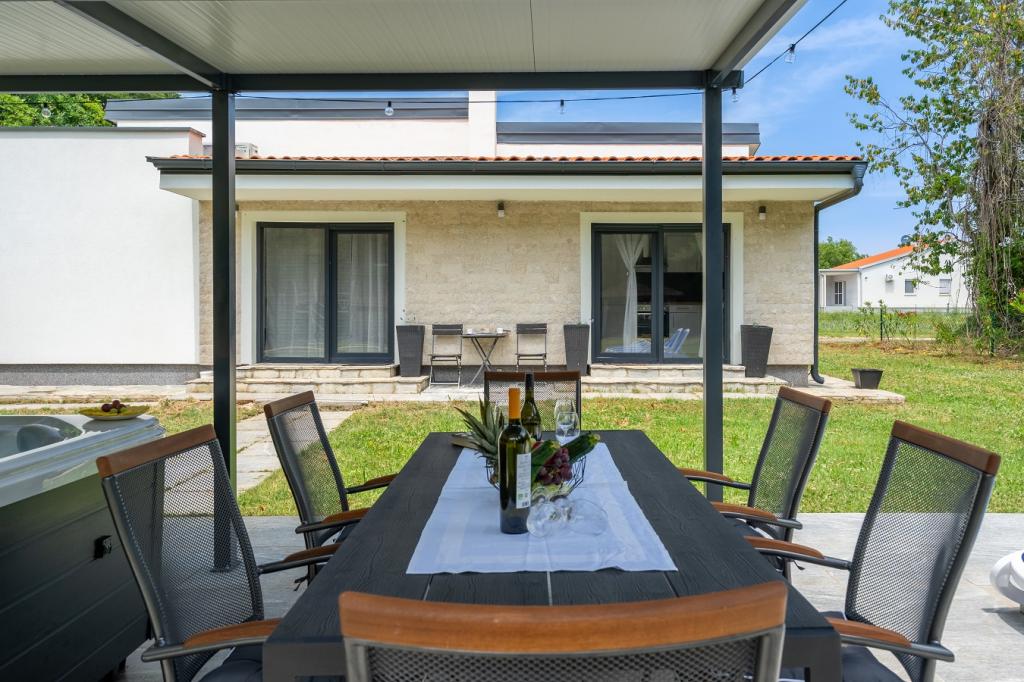 Imaginați-vă că sunteți trezit de razele soarelui și de cântatul păsărilor din copacii din jur, în timp ce vă relaxați și vă bucurați de jacuzzi (cadă cu masaj), așezați-vă confortabil pe șezlong și savurați prima cafea sau ceai de dimineață. O locație ideală pentru oaspeții cărora le place să se relaxeze și să se bucure de o oază de verdeață, însorită. Sunteți la aproximativ 10 minute cu mașina de plaje curate și mici. Oaspeții noștri beneficiază de utilizarea gratuită a unei plăci de SUP. Casă de vacanță frumoasă, nou construită, cu o grădină mare de 1300 m2. 2 terase exterioare pentru a te bucura de soare, un foișor cu umbră pentru a te bucura, jacuzzi, echipament de badminton, parcare privată gratuită la umbră. Casa este formată din 3 dormitoare (fiecare cameră cu aer condiționat), 2 băi și o mașină de spălat, un living mare cu aer condiționat și o bucătărie utilată cu mașină de spălat vase. Sunteți la 20 de minute de Aeroportul Pula și la 25 de minute de Arena amfiteatrului roman din centrul orașului Pula. Parcul Național Brijuni și orașul Rovinj sunt la aproximativ 30 de minute.