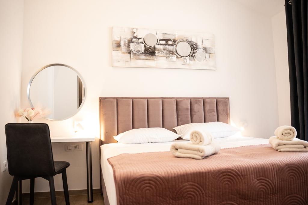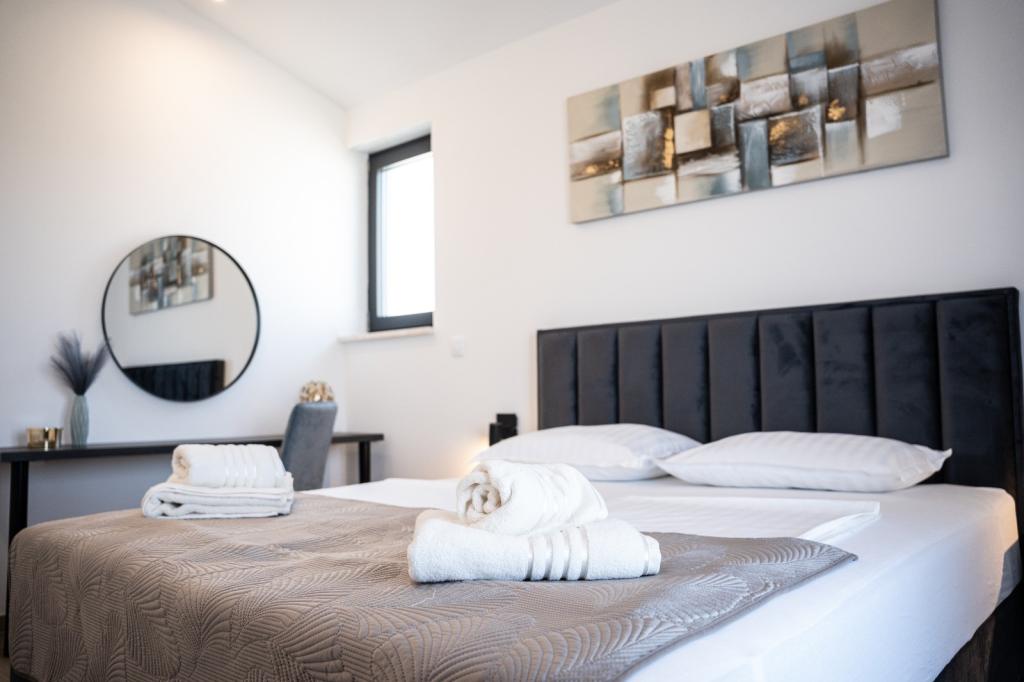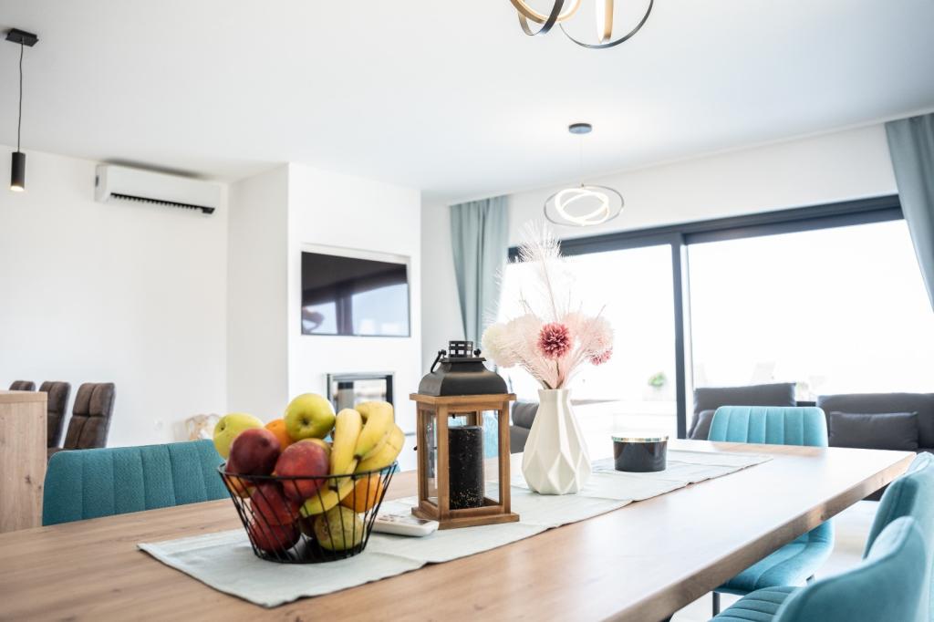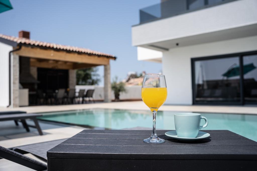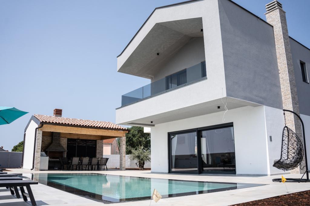Această vilă frumoasă este situată într-un loc foarte liniștit Rebići, Barban, la doar 2,5 km de mare, înconjurată de frumusețe naturală și verdeață și, ca atare, servește pentru o vacanță fără griji și perfectă, departe de aglomerația orașului, zgomot și trafic. În zilele senine, se vede marea de pe balconul de la primul etaj al casei. Fiecare cameră are propria sa terasă pentru momente de intimitate și liniște atunci când este nevoie. Vila este decorata intr-un mod foarte modern, oferindu-va atmosfera si caldura casei, a fost construita in anul 2023 intr-un stil foarte modern si contine si o facilitate exterioara cu bucatarie exterioara, frigider si doua gratare, gaz si lemne. -ardere. Mediul este special amenajat într-o combinație de plajă modernă în jurul unei piscine infinite de 10 x 3,8 metri și a unui gazon frumos decorat cu măslini bătrâni și alte diverse plante, creând o oază de relaxare. in curte sunt sezlonguri, umbrele si facilitati suplimentare precum tenis de masa, fotbal de masa.