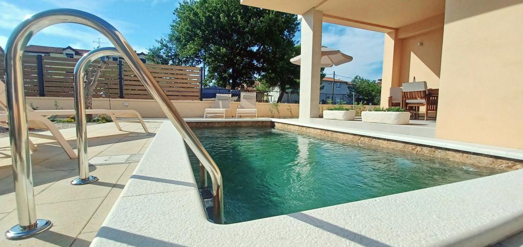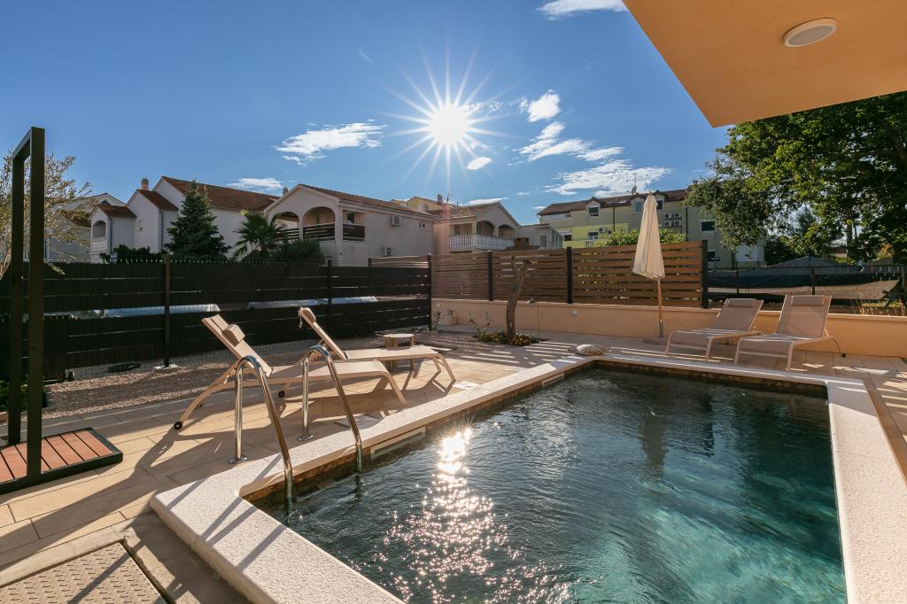 Această vilă fermecătoare, modern echipată și cu piscină, situată într-o zonă liniștită din Biograd na Moru, este ideală pentru o vacanță relaxantă. Interiorul elegant decorat oferă tot ce aveți nevoie pentru un sejur confortabil, în timp ce curtea spațioasă, cu piscină privată și zonă de plajă, garantează o experiență perfectă sub soarele mediteranean. Bucurați-vă de combinația dintre confort, stil și apropierea de mare în această vilă frumoasă. Dacă sunteți în căutarea unei oaze liniștite, relaxante și confortabile pentru vacanța dvs., acesta este locul și casa ideală pentru cei care preferă acest tip de vacanță.