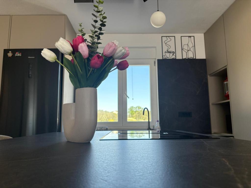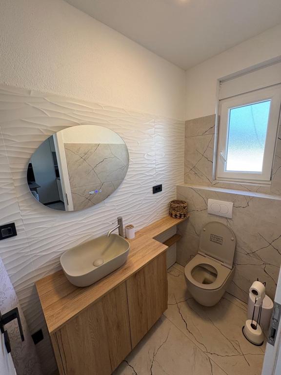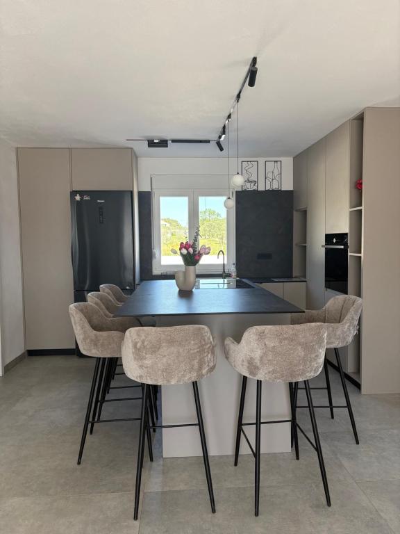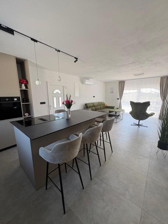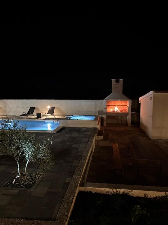 Casa de vacanță este situată în inima unei plantații de măslini, la doar 2 km de mare și este un loc ideal pentru o vacanță completă în liniște și pace. Înconjurată de natură, oferă un sentiment de intimitate departe de aglomerația orașului. O atmosferă specială este oferită de piscina încălzită, perfectă pentru a vă bucura de zilele de primăvară și vară. Grădina spațioasă este un spațiu ideal pentru activități în familie. La primul etaj al casei se află 3 dormitoare cu paturi duble și o baie mică. Al treilea dormitor are, de asemenea, un balcon cu o priveliște frumoasă asupra vegetației, iar la parter se află o bucătărie spațioasă și un living. Casa de vacanță Frano este o alegere ideală pentru dumneavoastră, deoarece combină confortul naturii și apropierea de mare, oferindu-vă tot ce aveți nevoie pentru un sejur de neuitat. Casa este dotată cu toate electrocasnicele și un șemineu exterior.