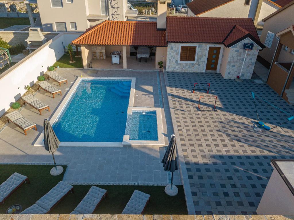 O vilă modernă cu piscină, la 3 km de centrul orașului. Facilitatea are o piscină de 8x4 metri și o piscină pentru copii de 3x1,5 metri. Conținut bogat pentru copii, fotbal de masă, biliard, tenis de masă, tobogan, trambulină...