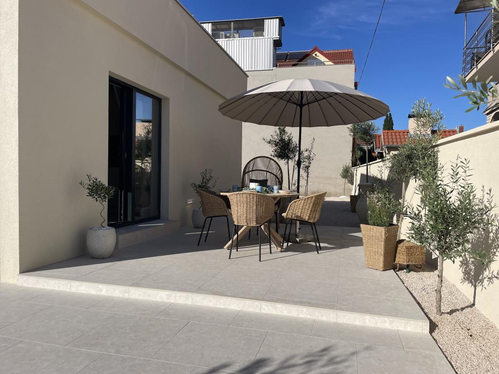 Vilă decorată modern, cu o curte mare și parcare. Mobilată cu design, la 10 minute de mers pe jos de plajă și la 5 minute de mers pe jos de centru. Clădirea are 3 dormitoare, este complet climatizată și are încălzire prin pardoseală. Zona din jurul casei este amenajată pentru un sejur de o zi întreagă, mai ales având în vedere copacii centenari care oferă o umbră excepțională în lunile fierbinți de vară.