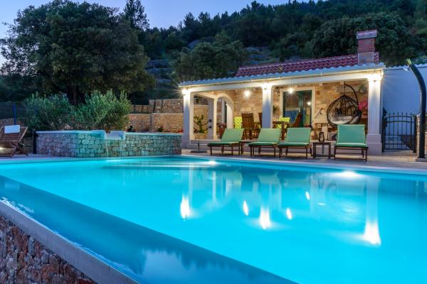 Taxa de rezidenta este inclusa in pret.Vila este o casa nou construita (2017) plina cu toate facilitatile de care ai nevoie pentru a avea o vacanta placuta si placuta. Vila dispune de mașină de spălat, fier de călcat, masă de călcat, uscător de păr, mașină de spălat vase, seif, alarmă, cuptor cu microunde, aragaz, cuptor, aer condiționat, trei televizoare cu plasmă, o zonă confortabilă în aer liber cu un grătar frumos, o terasă la soare pentru relaxare. piscina incalzita si masaj cu jacuzzi. Vino și bucură-te de vacanța de vară alături de noi! Această parte a Bol, după cum veți vedea, este o priveliște foarte spectaculoasă de la vilă este incredibilă. Sunt înconjurate de podgorii și măslinii noștri cu vedere la canalul Brač (mare) cu apusuri frumoase și raze de soare, este foarte privat și retras, nu este necesară o mașină, dar ar fi bi