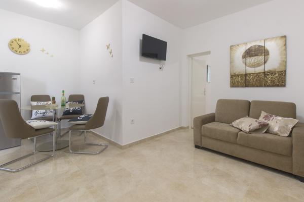 VILA NOUA CU GRADINA SI CURTE Vila frumoasa, moderna, intr-un mediu natural mediteranean verde. Vila dispune de 60 m2 suprafata locuibila, gradina si curte in suprafata totala de 400 m2, parcare pazita. Vila dispune de: - 2 dormitoare - 1 baie - bucatarie cu sufragerie - balcon/terasa complet utilata/bucatarie, camera si baie Wi-Fi, aer conditionat, parcare, inregistrare oaspeti - inclusa in pret! GRADINA SI CURTE: – Loc de joaca pentru copii/ - curte cu deschidere/inchidere automata a usii. - Bucurați-vă de fructele legumelor organice din grădina noastră.