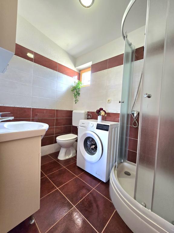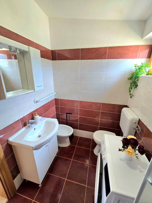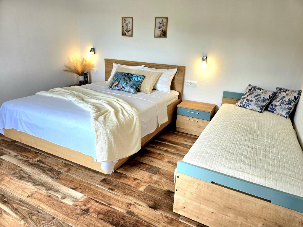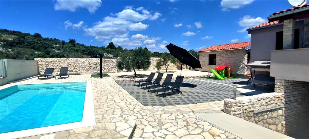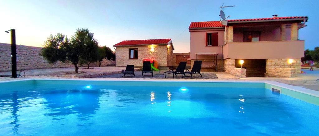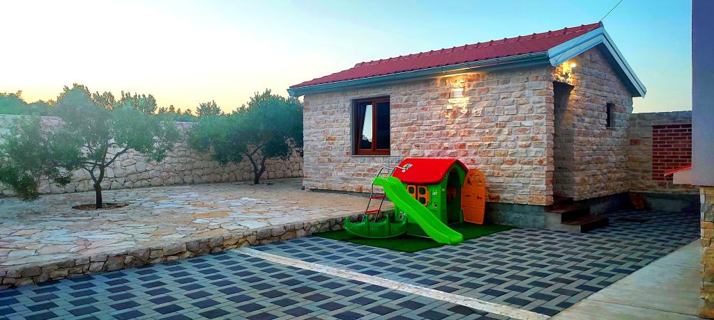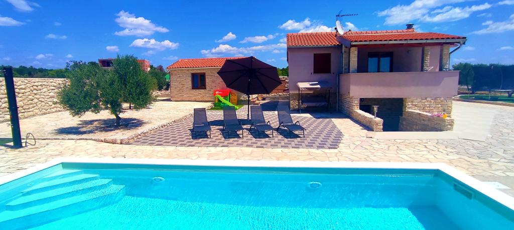 Casa noastră de vacanță este o evadare ideală de aglomerația orașului și de stresul acumulat și este adaptată și pentru cei mai mici. De pe terasă vă puteți bucura de priveliștea mării, care evocă senzația unei cățărări dalmate. Cu parcare privată, casa are 3 dormitoare și 2 băi, oferind confort pentru 7 persoane. Spațiul este climatizat, bucătăria este complet utilată și oferim și un pătuț și un cărucior pentru bebeluși - gratuit! Pentru mai multă plăcere, există o piscină mare, grătar în aer liber, Wi-Fi, Netflix, trambulină, bicicletă de fitness, cameră cu darts și tenis de masă și un colț pentru copii. Foarte aproape de cazare se află Lacul Vrana, pe care îl puteți explora pe bicicletele noastre. Așteptăm cu nerăbdare sosirea dumneavoastră!