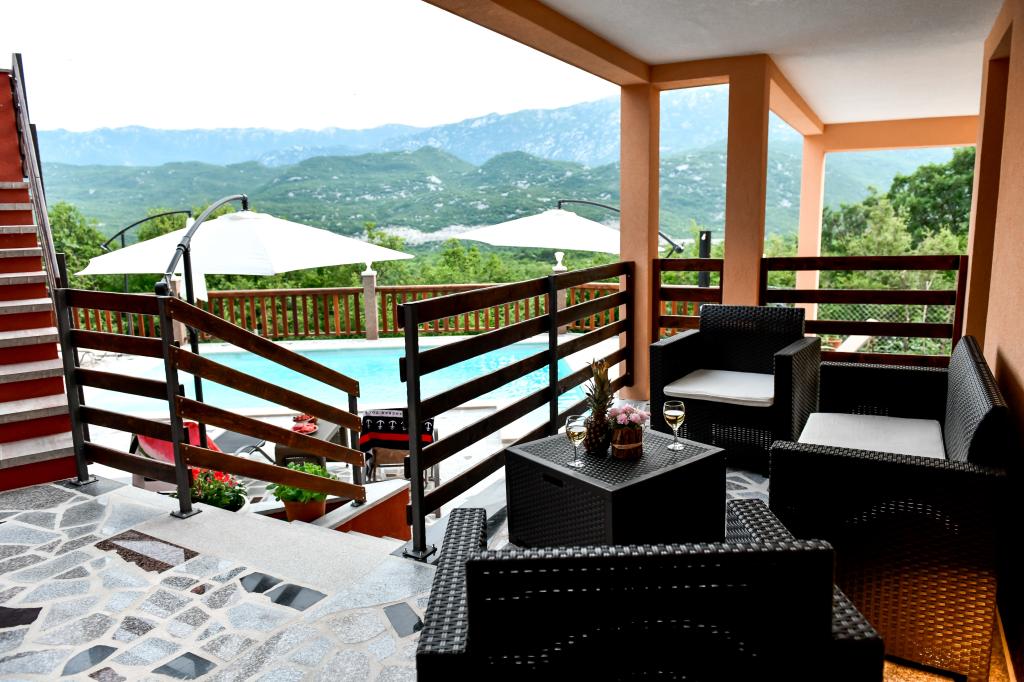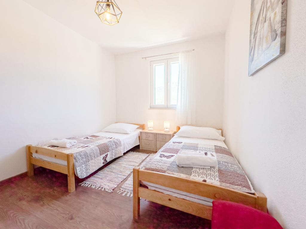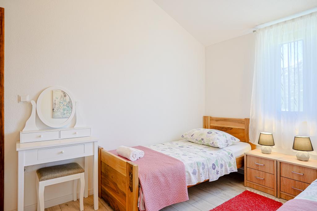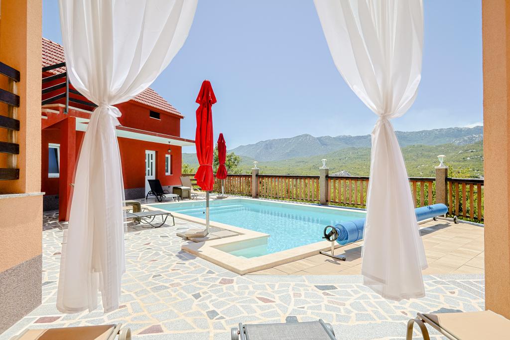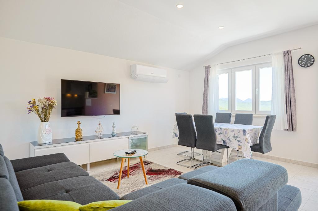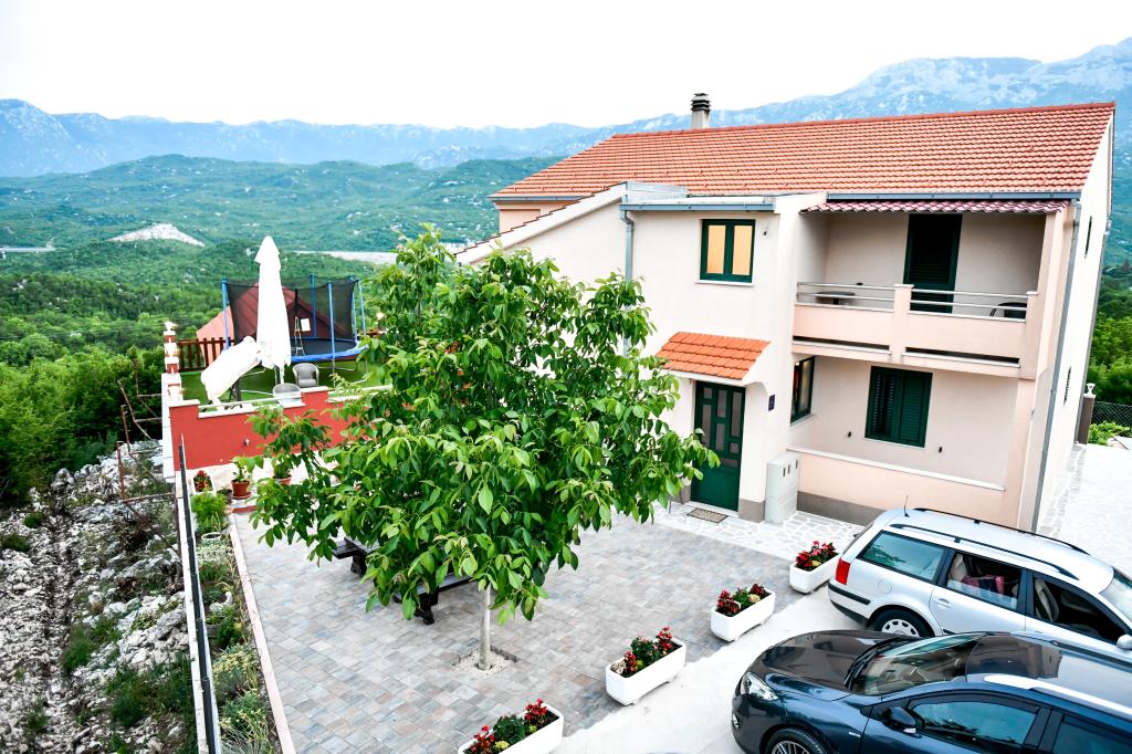 Casa de vacanță spațioasă va oferi distracție și relaxare completă pentru 12 persoane. Grădină spațioasă, cu o piscină încălzită de 7x4 metri, cu apă și masaj cu aer pentru distracție și relaxare. Lângă piscină există o bucătărie de vară cu o sufragerie și o baie, care include și un grătar în aer liber. Fiecare apartament are 3 dormitoare, 2 băi, bucătării complet echipate, camere de zi spațioase cu televizoare inteligente și balcoane cu vedere la piscină și la Muntele Biokovo. Oferta include o trambulina pentru cei mici, un gratar interior, 5 locuri de parcare si o terasa mare. Unicitatea acestei proprietăți constă în faptul că casa este situată într-o zonă retrasă, astfel încât să fii sigur că te vei bucura de intimitate deplină. Locația casei este excelentă deoarece se află la 25 de minute cu mașina de Marea Adriatică, la 10 minute cu mașina de magazine, cafenele și restaurante. Orașele Makarska, Imotski, Split, Omiš, Međugorje, Makarska și alte locații atractive sunt la mai puțin de 20 de minute până la 1 oră cu mașina de noi. Intrarea pe autostradă este la 9 km.