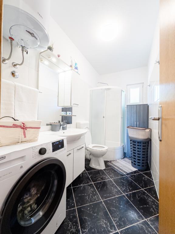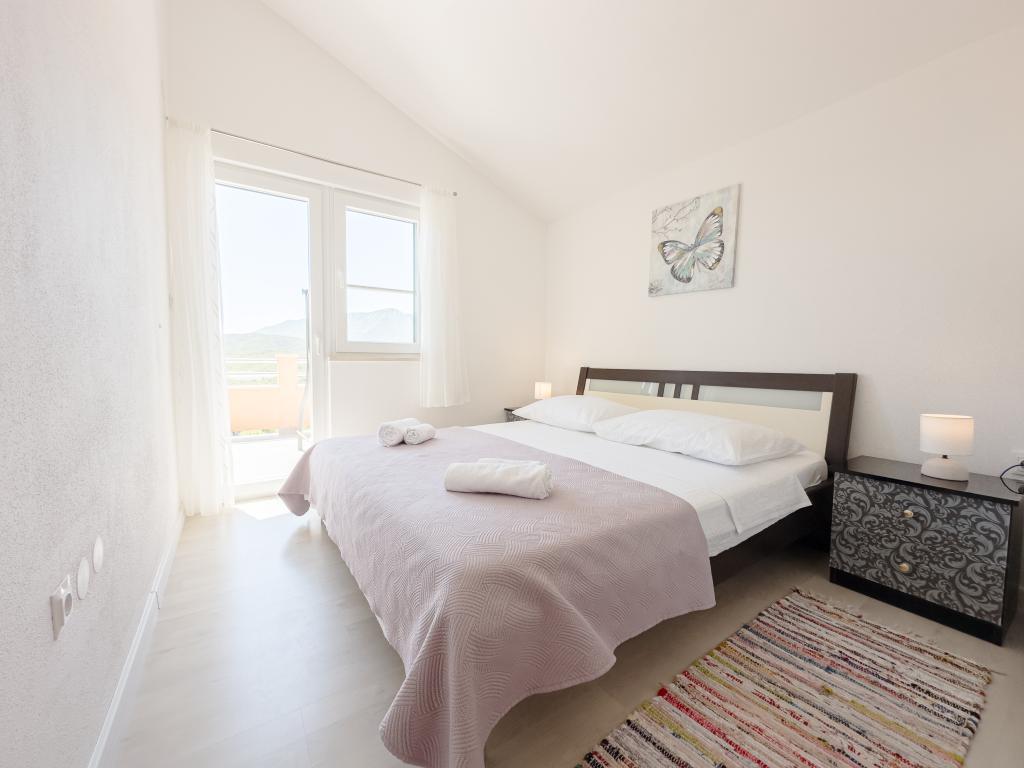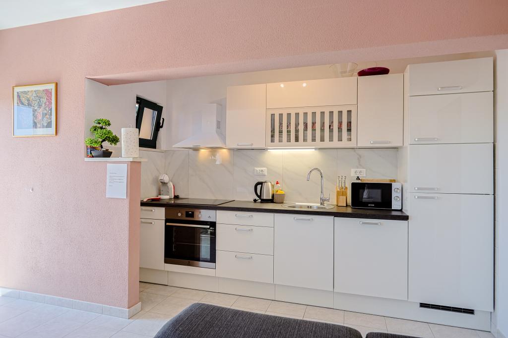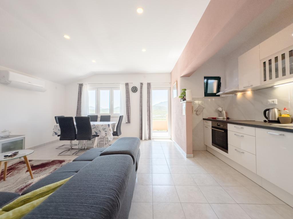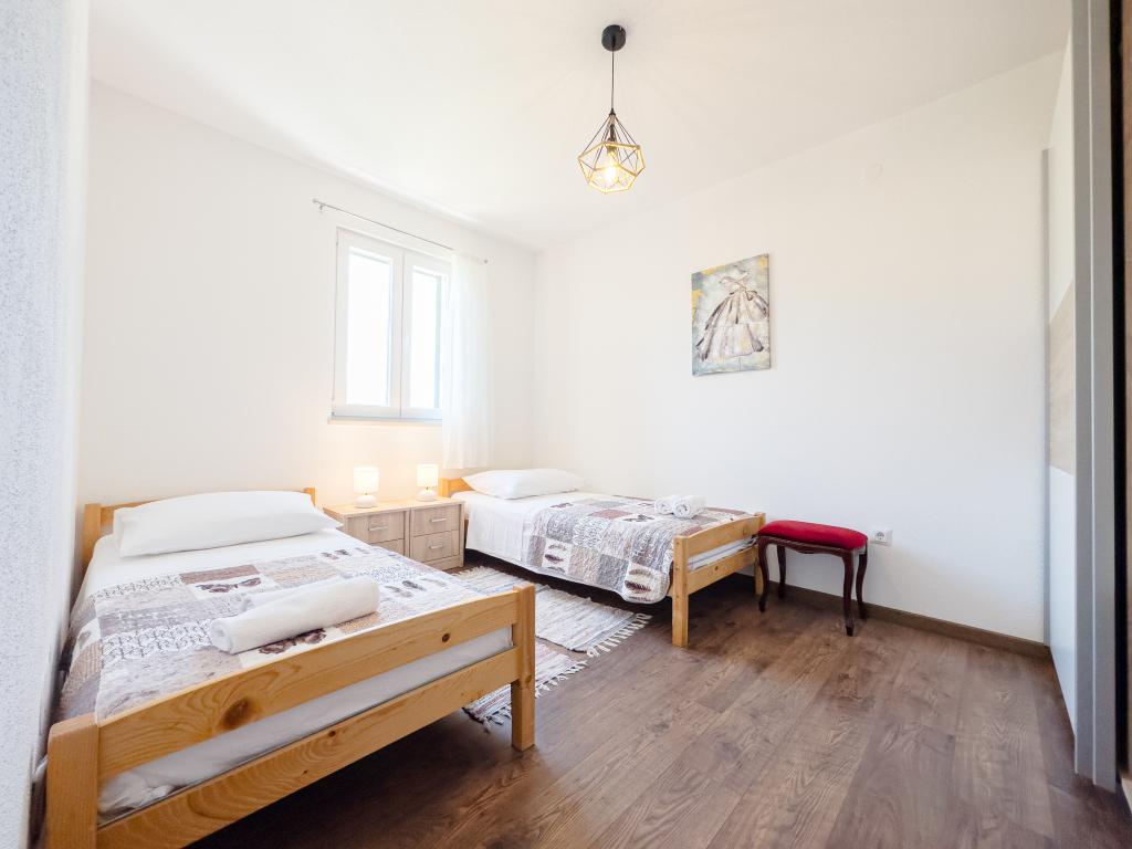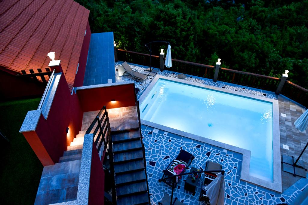 Casa de vacanță spațioasă va oferi distracție și relaxare completă pentru 12 persoane. Grădină spațioasă, cu o piscină încălzită de 7x4 metri, cu apă și masaj cu aer pentru distracție și relaxare. Lângă piscină există o bucătărie de vară cu o sufragerie și o baie, care include și un grătar în aer liber. Fiecare apartament are 3 dormitoare, 2 băi, bucătării complet echipate, camere de zi spațioase cu televizoare inteligente și balcoane cu vedere la piscină și la Muntele Biokovo. Oferta include o trambulina pentru cei mici, un gratar interior, 5 locuri de parcare si o terasa mare. Unicitatea acestei proprietăți constă în faptul că casa este situată într-o zonă retrasă, astfel încât să fii sigur că te vei bucura de intimitate deplină. Locația casei este excelentă deoarece se află la 25 de minute cu mașina de Marea Adriatică, la 10 minute cu mașina de magazine, cafenele și restaurante. Orașele Makarska, Imotski, Split, Omiš, Međugorje, Makarska și alte locații atractive sunt la mai puțin de 20 de minute până la 1 oră cu mașina de noi. Intrarea pe autostradă este la 9 km.