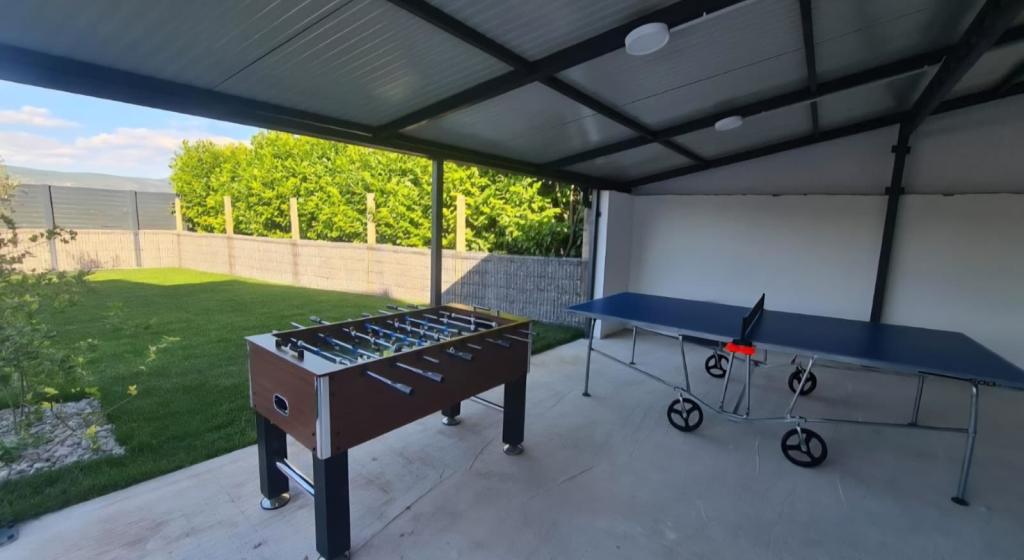 Vila Olea este o vilă frumoasă și luxoasă care oferă oaspeților săi o atmosferă unică pentru odihnă și relaxare în inima regiunii Imotska, de unde se desfășoară o priveliște de neuitat asupra munților Imotsko polje și a lacurilor Plavo și Crveno jezero. Vila are o piscină infinită privată mare, o zonă de divertisment care include fotbal de masă, tenis de masă, darts și o zonă de joacă, precum și o zonă confortabilă de grătar și divertisment care include o bucătărie în aer liber și un mini bar. Lângă piscină există șezlonguri confortabile, un duș exterior și un foișor pentru socializare și relaxare plăcută. În interiorul vilei există 2 bucătării complet utilate, 5 băi, 6 dormitoare cu paturi king-size și 2 canapele extensibile confortabile, două livinguri spațioase cu televizoare inteligente mari și o consolă de jocuri Play Station pentru divertisment. Vila este complet climatizată, oferă wi-fi gratuit, parcare gratuită, prosoape și lenjerie de pat sau tot ce aveți nevoie pentru o vacanță de neuitat și plăcută. Suntem la 25 km de mare.