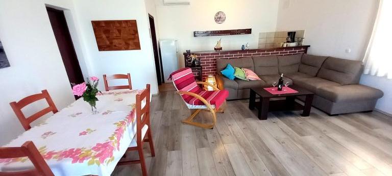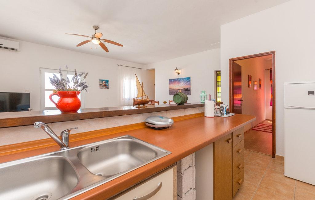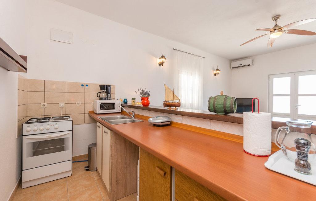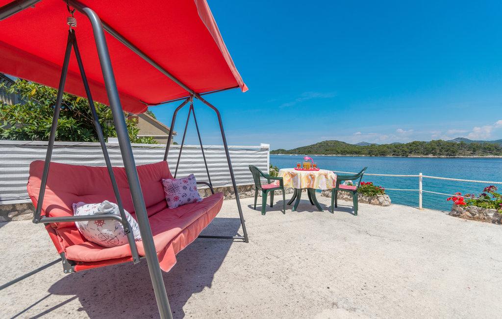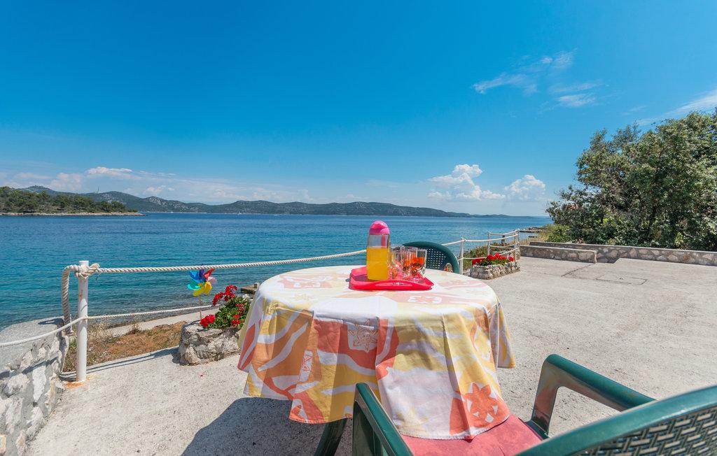 O terasă spațioasă cu șezlonguri confortabile și umbrele, care oferă o priveliște frumoasă asupra mării, este o invitație excelentă de a vă petrece vacanța aici. Relaxați-vă cu familia în această cazare plăcută. Mali Iž, situat în canalul mijlociu dintre Ugljan și Dugi Otok, este înconjurat de alte insulițe. Liniile de feribot și vapor permit sosirea rapidă. Restaurantele servesc vinuri locale bune și bucătărie delicioasă dalmată. Casa de vacanță este formată dintr-o zonă comună spațioasă, living, bucătărie și sufragerie - spațiu deschis, două dormitoare și o baie. Un dormitor are un pat dublu de 160×200 cm, iar celălalt dormitor are un pat suprapus de 90×200 cm. Casa are o terasă spațioasă cu vedere la mare, la 10 metri de mare. Există un șemineu cu grătar lângă casă. Parcarea gratuită este disponibilă într-o zonă publică din apropierea unității de cazare.
