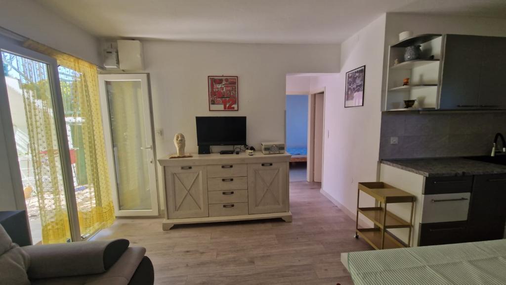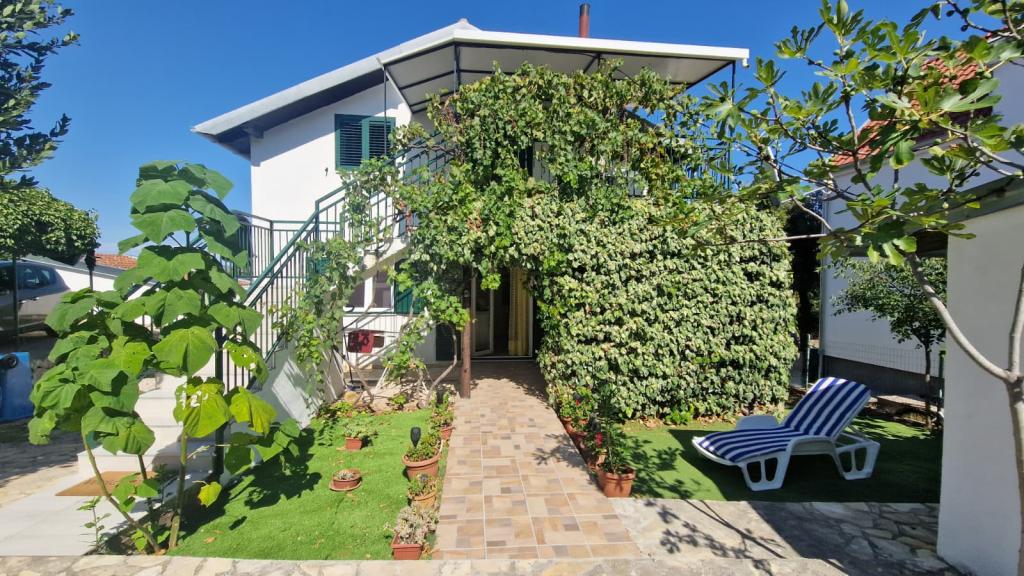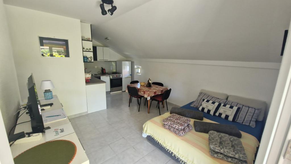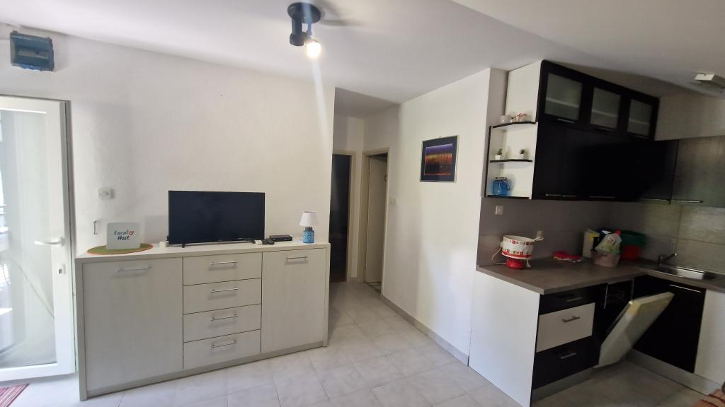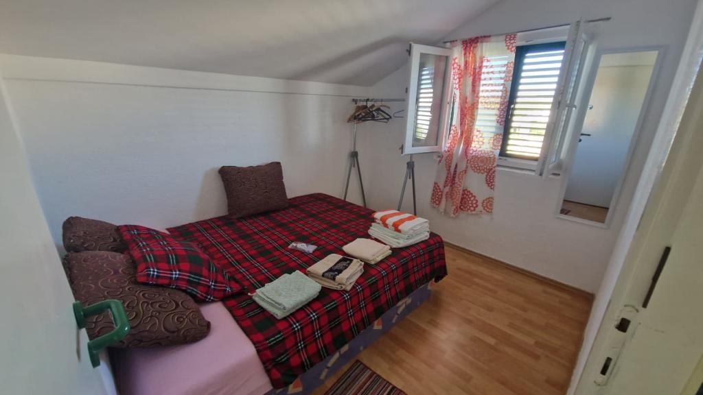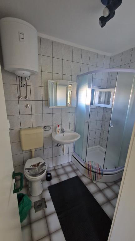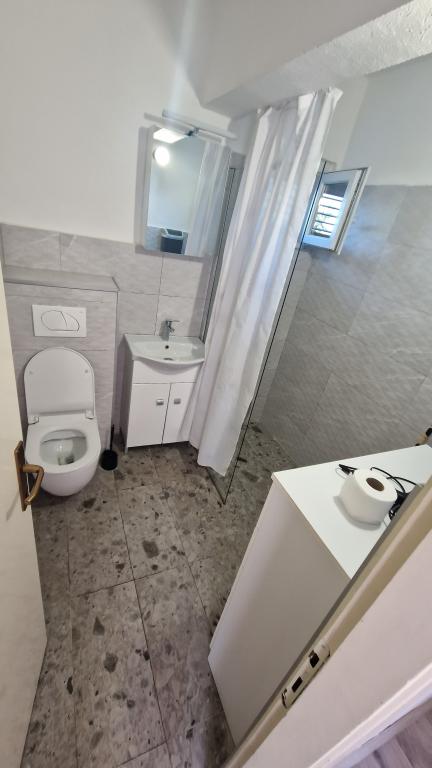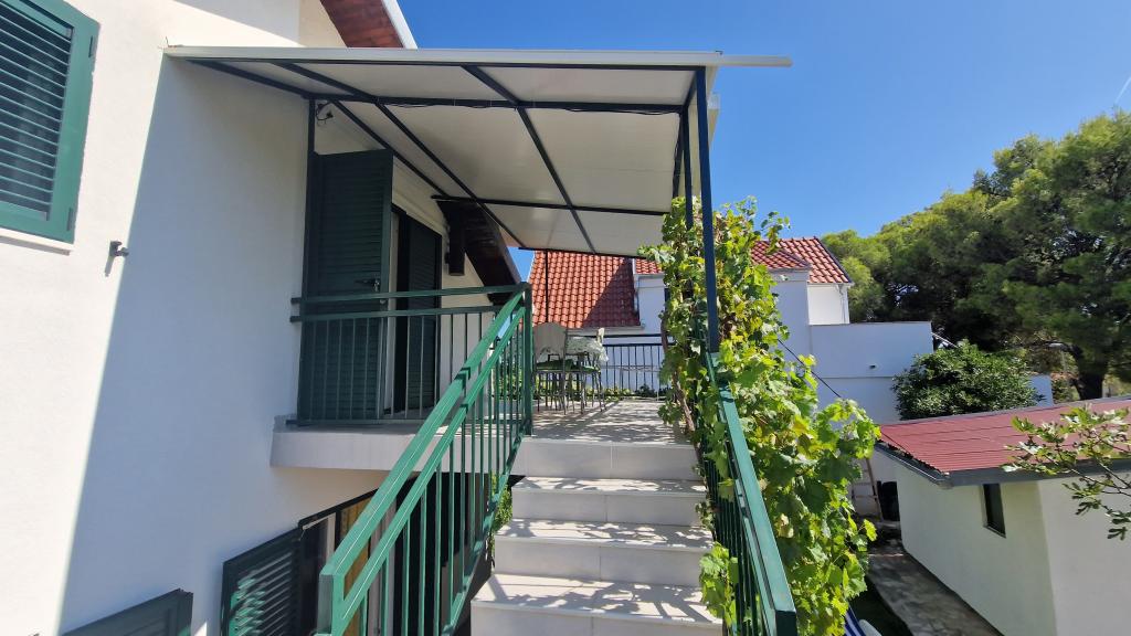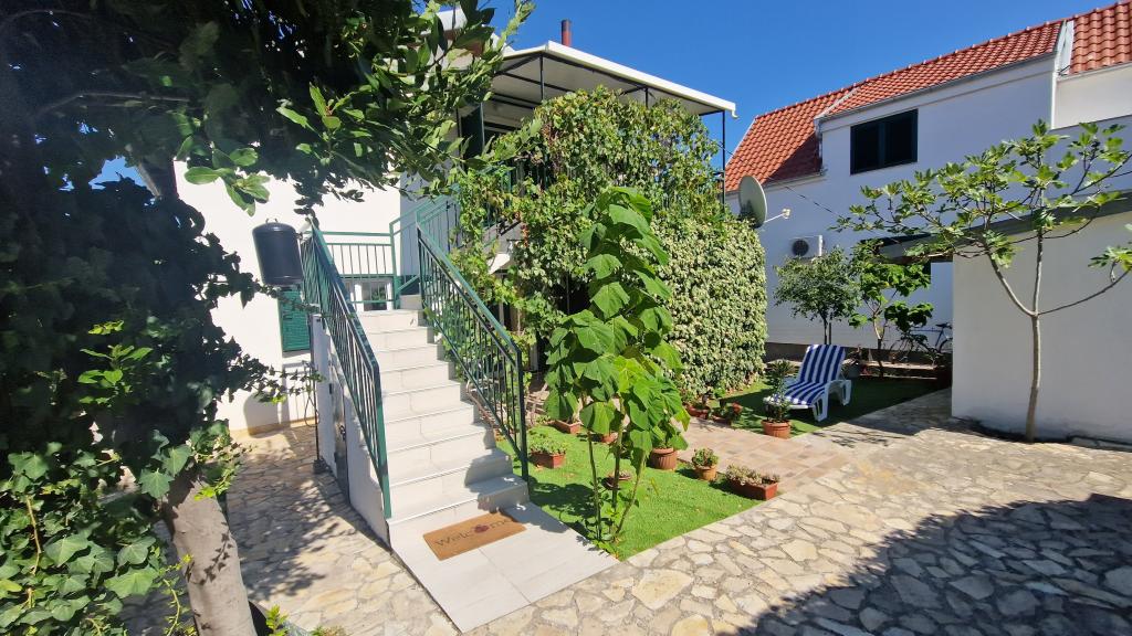Casa este formată din două apartamente complet utilate (parter și etaj) cu o capacitate totală de 8 persoane. Apartamentele sunt separate, iar casa este închiriată în întregime - o soluție ideală pentru două familii sau un grup de prieteni care doresc să petreacă vacanța împreună, menținând în același timp intimitatea. Fiecare apartament are un living, bucătărie, baie, 2 dormitoare și o terasă proprie acoperită - locul perfect pentru cafeaua de dimineață, prânzul la umbră sau socializarea seara. Casa dispune de parcare gratuită (maxim 3 mașini), Wi-Fi, aer condiționat și televizor în ambele apartamente. Locația este excelentă pentru excursii la Šibenik (12 km), Vodice (10 km) și parcurile naționale din apropiere, Krka și Kornati. În apropiere se află un magazin, un restaurant și o plajă bine întreținută, cu mare limpede.