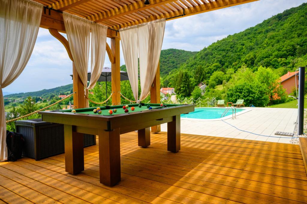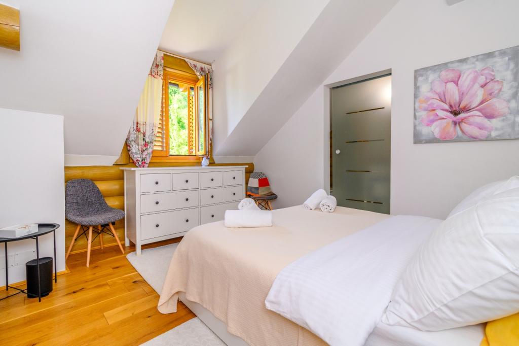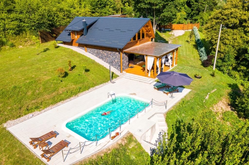 Nu departe de Zagreb, la doar 44 km și la 350 de metri deasupra nivelului mării, la poalele Munților Japetić, casa de lemn Wellspring este situată în Sveta Jana (Gorica Svetojanska). O parte a terenului (dintr-un total de 2.700 m2) este inclusă în aria protejată a Parcului Natural Žumberak și, ca atare, este un loc deosebit de inspirat pentru vacanță. În sat există mai multe surse naturale de apă potabilă, iar primul sat mai mare Jastrebarski este la 9 km. Casa din lemn Wellspring este formată din două etaje cu wi-fi gratuit. La etajul inferior se află o zonă de living deschisă cu șemineu, o sufragerie și bucătărie bine utilată, un dormitor, o zonă de spa cu saună finlandeză și jacuzzi, cabină de duș și toaletă. La etaj sunt doua dormitoare cu bai proprii si spatiu pe galerie pentru odihna/lectura. Pe lângă șemineu, exista și încălzire centrală pentru lunile reci de iarnă, precum și încălzire prin pardoseală în zona spa. Terasa acoperita cu vedere spre sud are 40 m2 si o piscina incalzita cu sezlong, dus si sezlonguri.