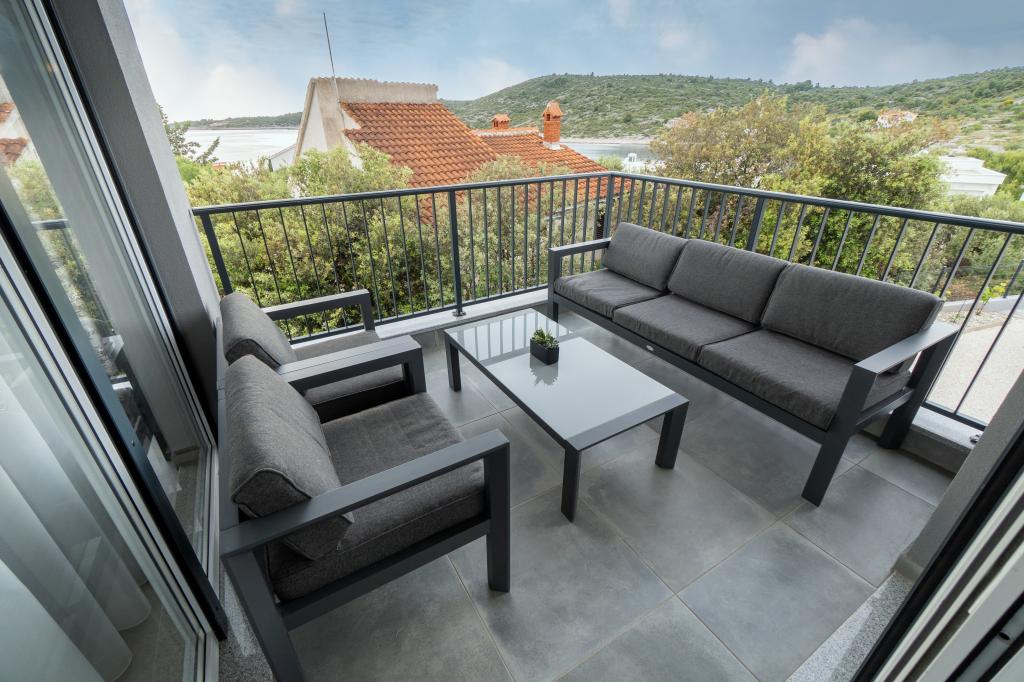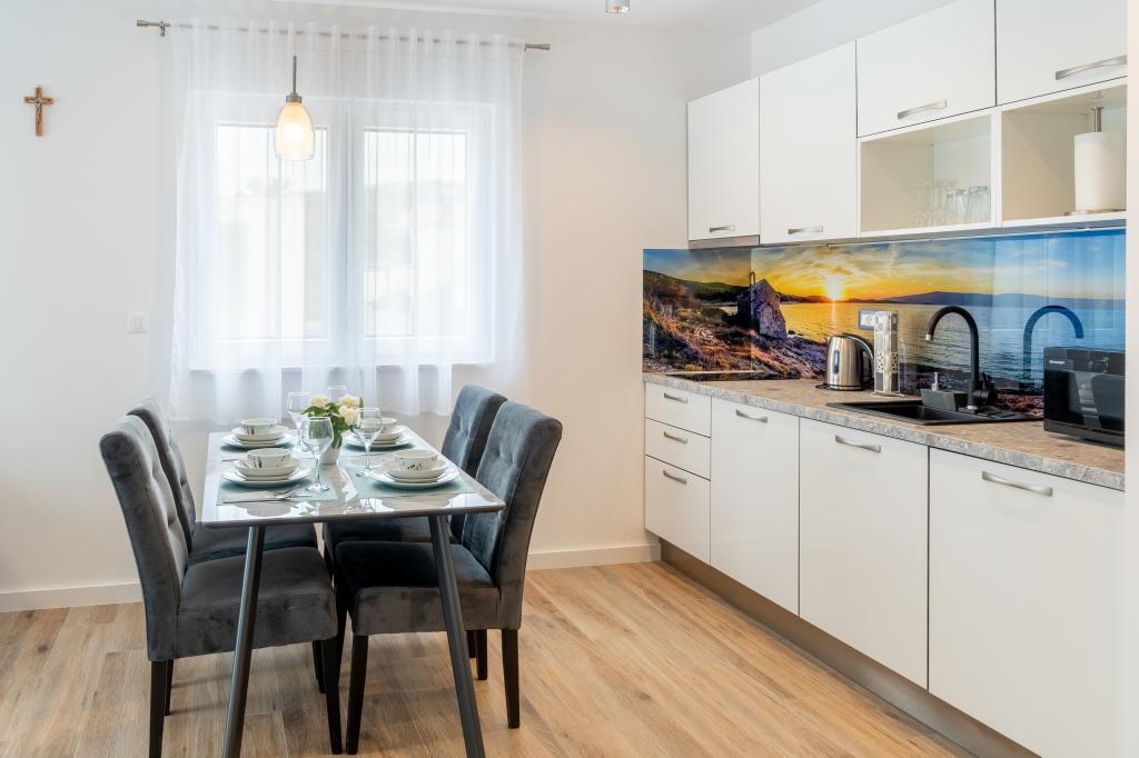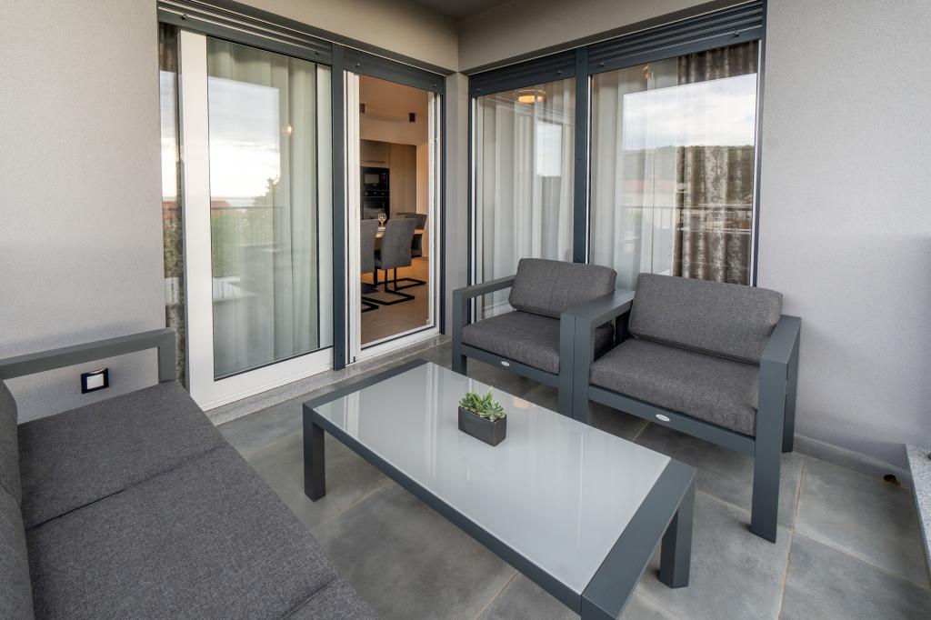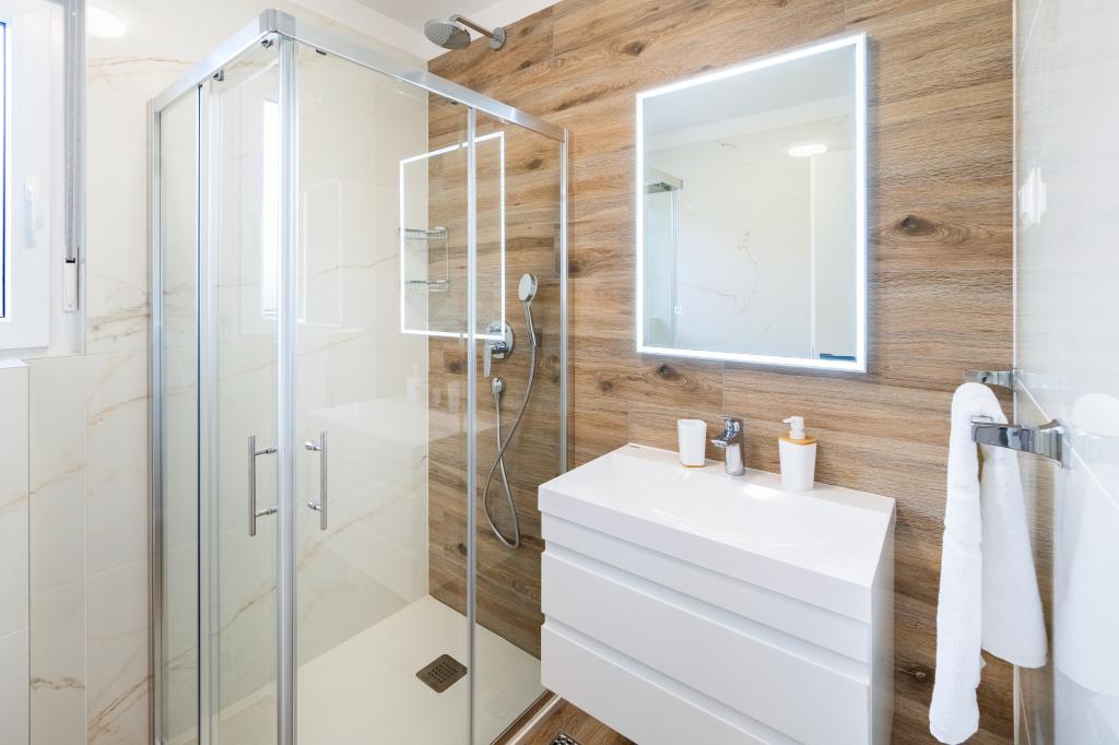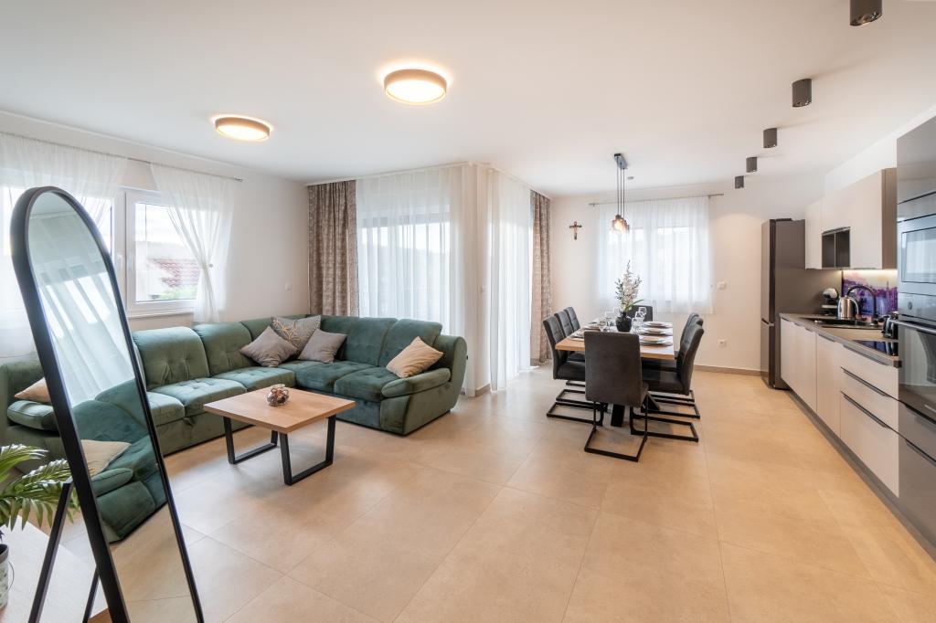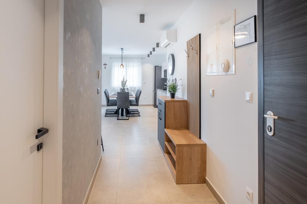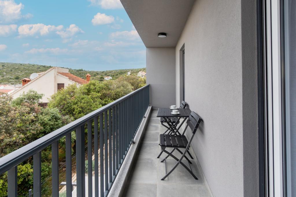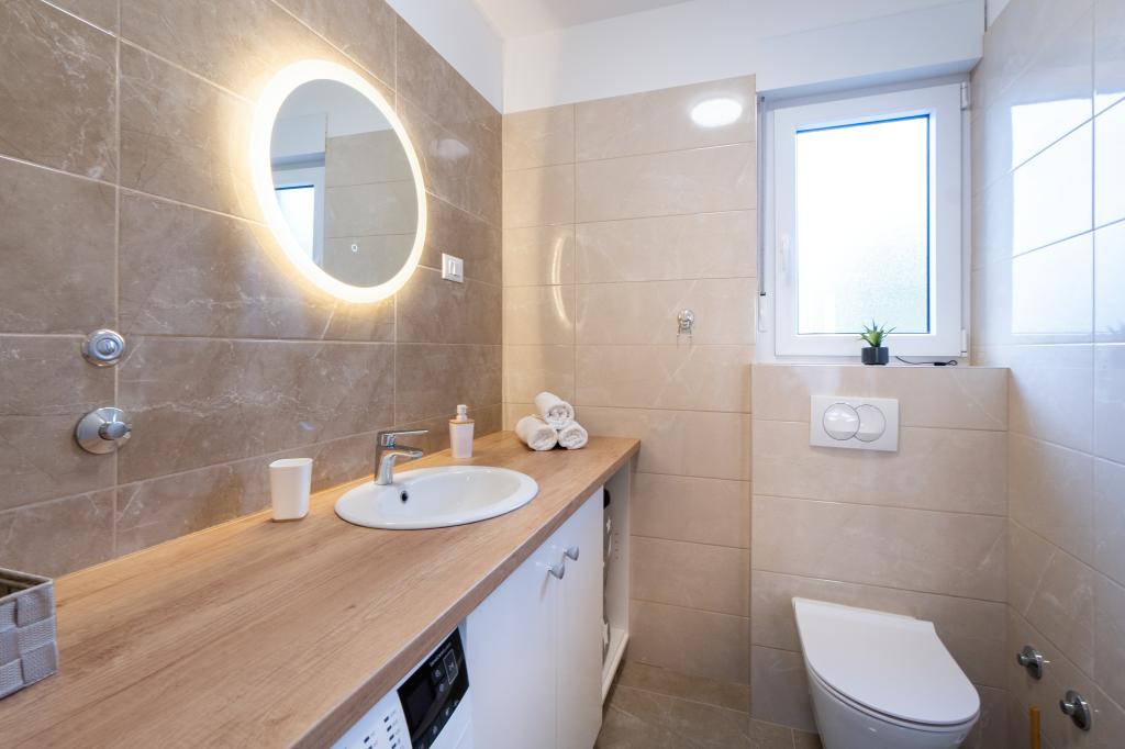 Noua facilitate. Bucurați-vă cu familia în această cazare modernă, cu apusuri frumoase și vedere la mare. Cartier linistit. Două apartamente care se închiriază în întregime. La parter se afla o garsoniera formata dintr-o bucatarie, o baie si o camera cu pat dublu, exista si un pat suplimentar in living. La primul etaj se afla un apartament mare format dintr-o bucatarie, un living, un balcon cu mobilier de gradina ideal pentru cafeaua de dimineata, doua camere cu pat matrimonial si o camera cu doua paturi separate care pot fi conectate la nevoie. Acest apartament are două băi, dintre care una face parte din cameră și o toaletă. La etajul doi al blocului se afla o terasa mare cu vedere la intreg si o cada cu hidromasaj pentru 5 persoane, sezlonguri pentru plaja, gratar, bucatarie de vara si masa si scaune. Există, de asemenea, o zonă acoperită mai mică în exterior, cu un grătar și o masă și bănci.
