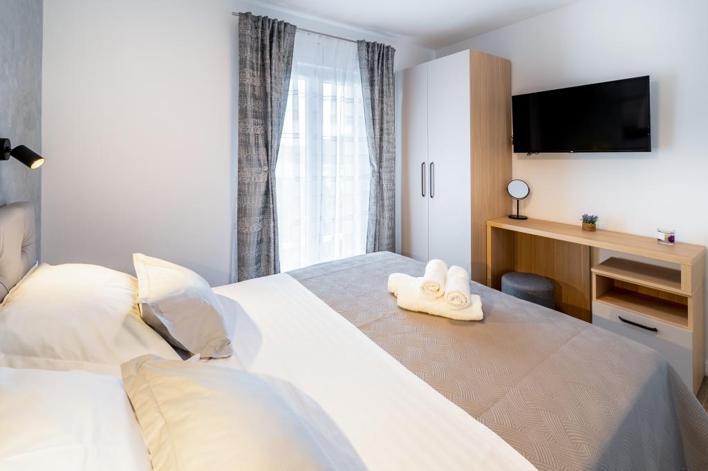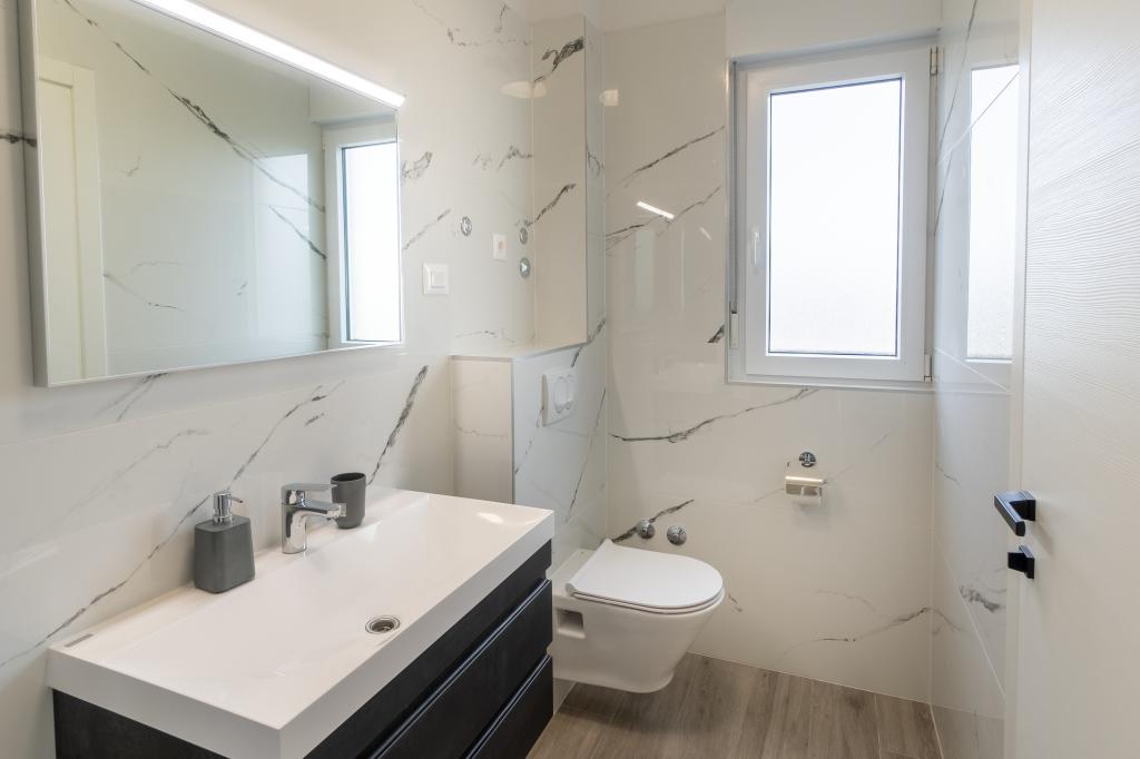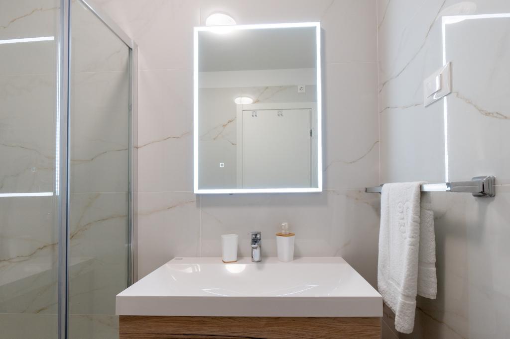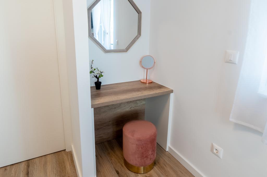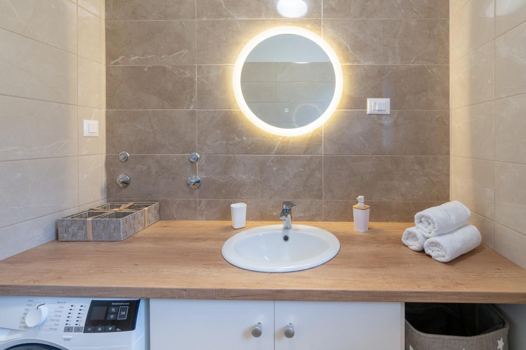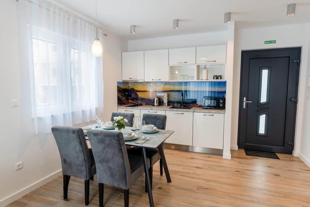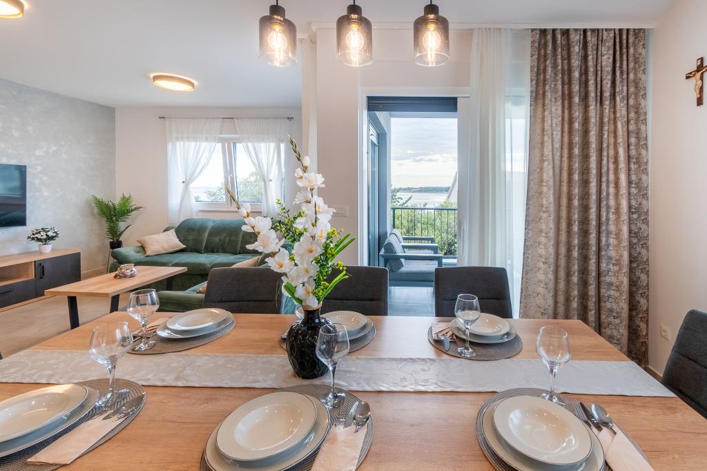Noua facilitate. Bucurați-vă cu familia în această cazare modernă, cu apusuri frumoase și vedere la mare. Cartier linistit. Două apartamente care se închiriază în întregime. La parter se afla o garsoniera formata dintr-o bucatarie, o baie si o camera cu pat dublu, exista si un pat suplimentar in living. La primul etaj se afla un apartament mare format dintr-o bucatarie, un living, un balcon cu mobilier de gradina ideal pentru cafeaua de dimineata, doua camere cu pat matrimonial si o camera cu doua paturi separate care pot fi conectate la nevoie. Acest apartament are două băi, dintre care una face parte din cameră și o toaletă. La etajul doi al blocului se afla o terasa mare cu vedere la intreg si o cada cu hidromasaj pentru 5 persoane, sezlonguri pentru plaja, gratar, bucatarie de vara si masa si scaune. Există, de asemenea, o zonă acoperită mai mică în exterior, cu un grătar și o masă și bănci.