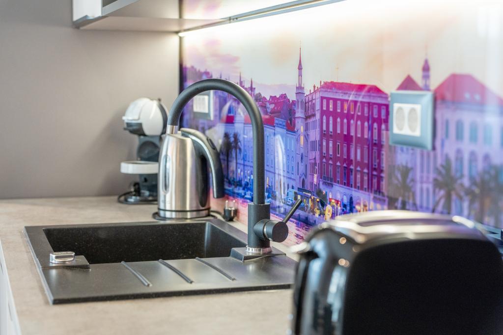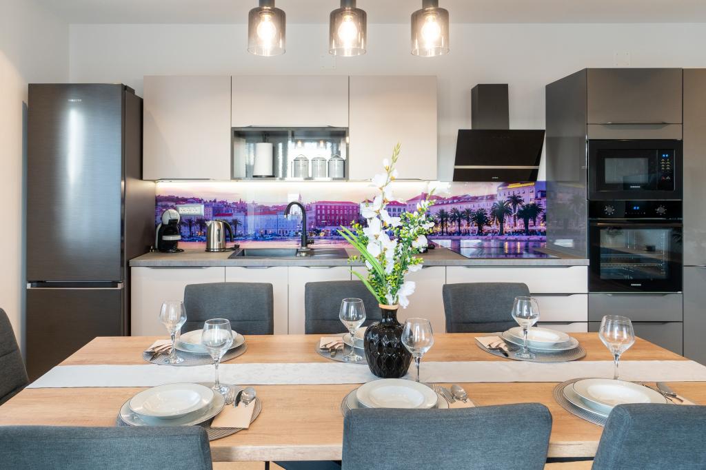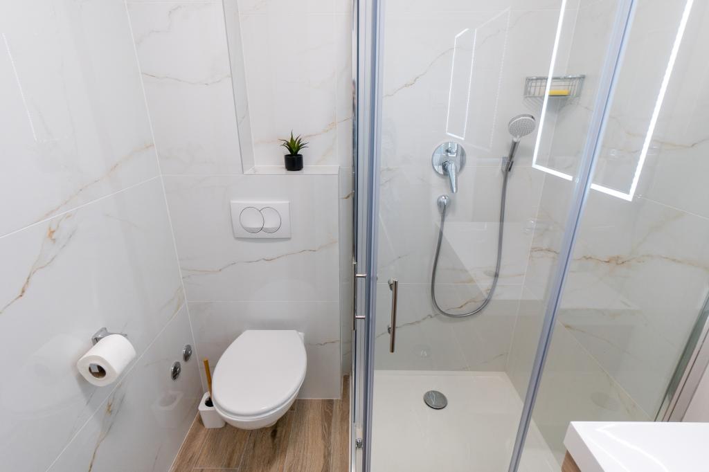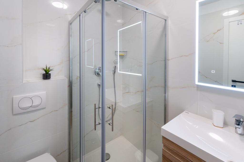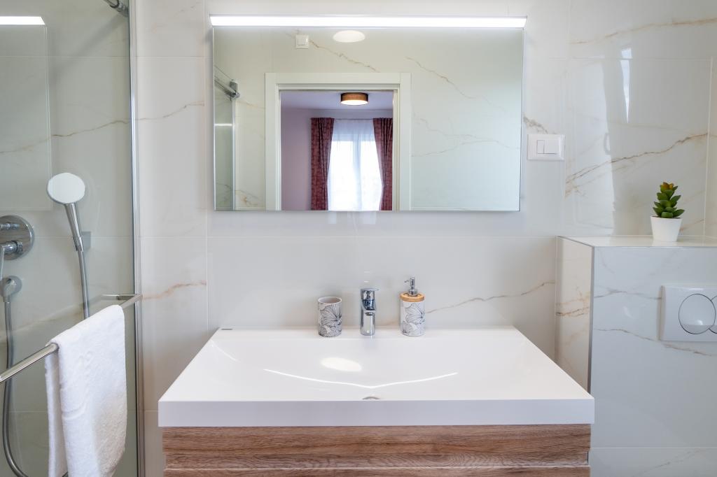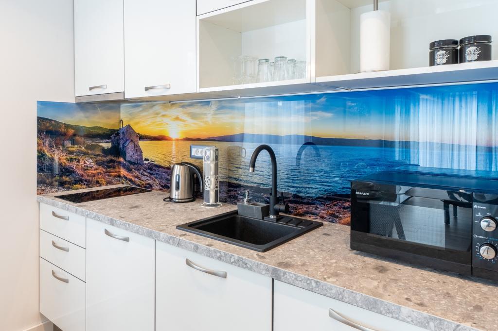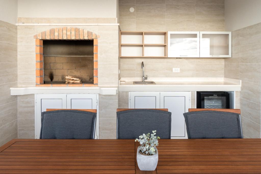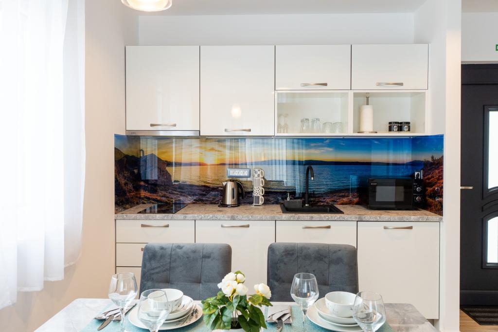 Noua facilitate. Bucurați-vă cu familia în această cazare modernă, cu apusuri frumoase și vedere la mare. Cartier linistit. Două apartamente care se închiriază în întregime. La parter se afla o garsoniera formata dintr-o bucatarie, o baie si o camera cu pat dublu, exista si un pat suplimentar in living. La primul etaj se afla un apartament mare format dintr-o bucatarie, un living, un balcon cu mobilier de gradina ideal pentru cafeaua de dimineata, doua camere cu pat matrimonial si o camera cu doua paturi separate care pot fi conectate la nevoie. Acest apartament are două băi, dintre care una face parte din cameră și o toaletă. La etajul doi al blocului se afla o terasa mare cu vedere la intreg si o cada cu hidromasaj pentru 5 persoane, sezlonguri pentru plaja, gratar, bucatarie de vara si masa si scaune. Există, de asemenea, o zonă acoperită mai mică în exterior, cu un grătar și o masă și bănci.