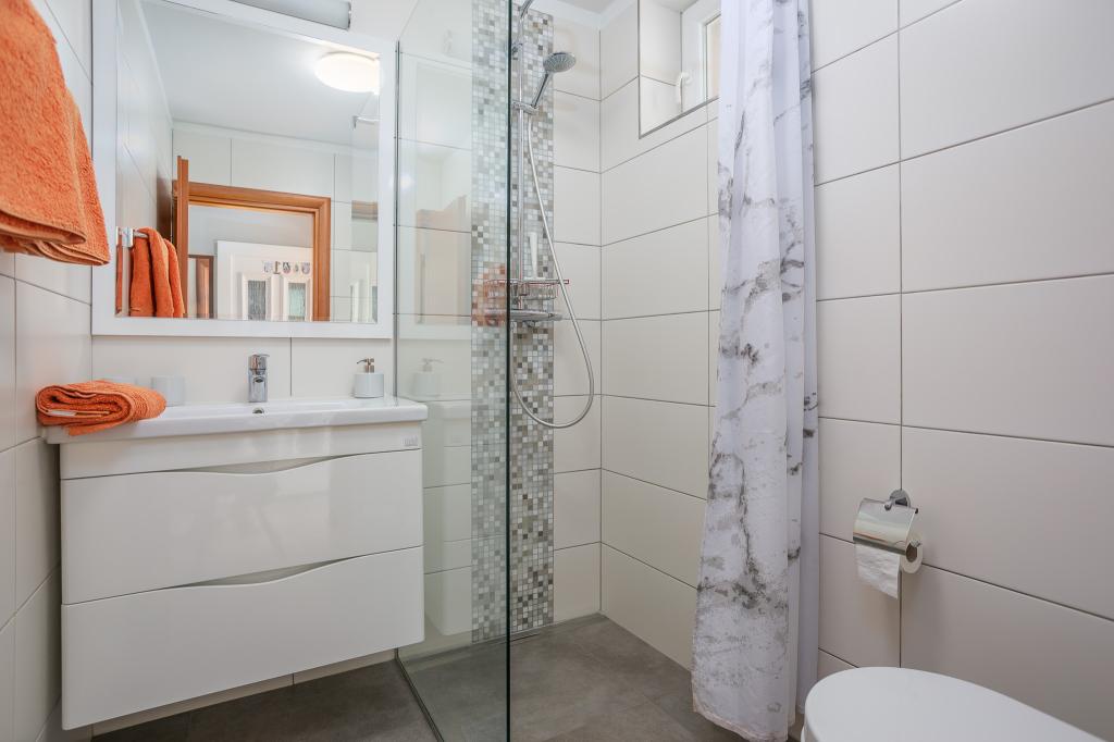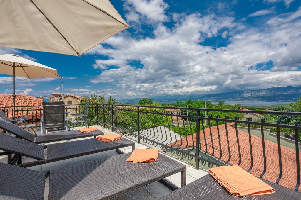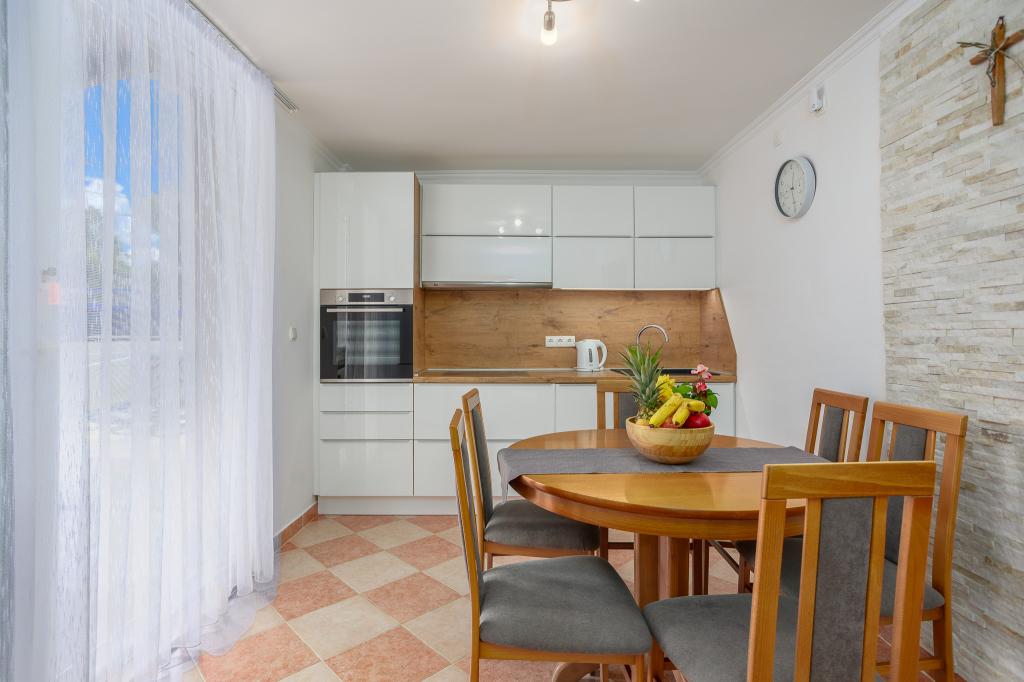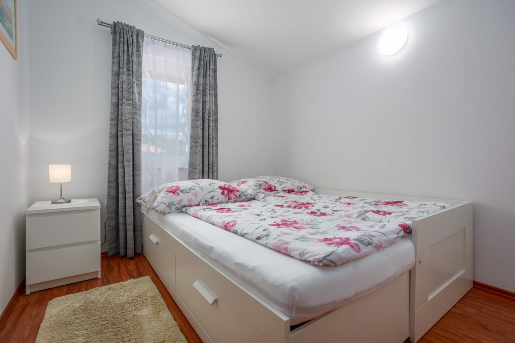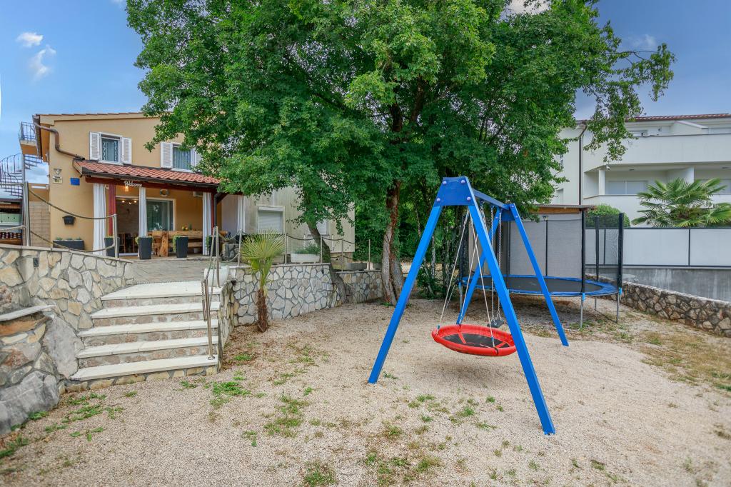 Vă invităm să vă petreceți vacanța în familie pe insula Krk în casa de familie Margareta. Vă oferim o casă complet utilată și modern pentru două familii, în două apartamente separate, potrivite pentru 8 până la 10 persoane, pe un teren de 900 m². Casa noastră de familie Margareta este o casă de patru stele, situată la 200 m deasupra nivelului mării, la doar două minute de golful Soline, iar multe alte atracții ale insulei Krk sunt accesibile în câteva minute de mers cu mașina. Casa este formată din 4 dormitoare cu paturi duble, două băi/toalete și o toaletă suplimentară la parter, două bucătării și două camere de zi cu o canapea extensibilă pentru 1-2 persoane. În plus, casa are 4 terase, un grătar și un loc de joacă pentru copii cu o trambulină și un leagăn. Casa este situată în așezarea Vila za odmor din Gornja Hlapa, lângă Soline, municipiul Dobrinj de pe insula Krk. Avem parcare pentru 5 mașini în curte. Există, de asemenea, o terasă frumoasă pe acoperiș pentru apusuri romantice și plajă cu vedere la Marea Kvarner. Bucurați-vă de Krk.