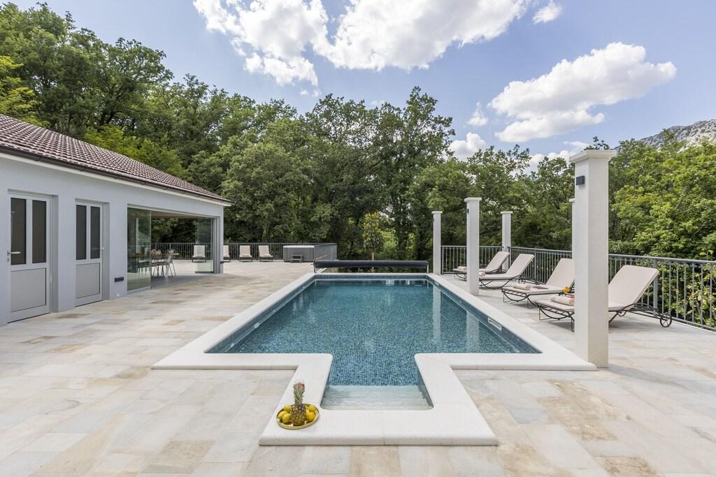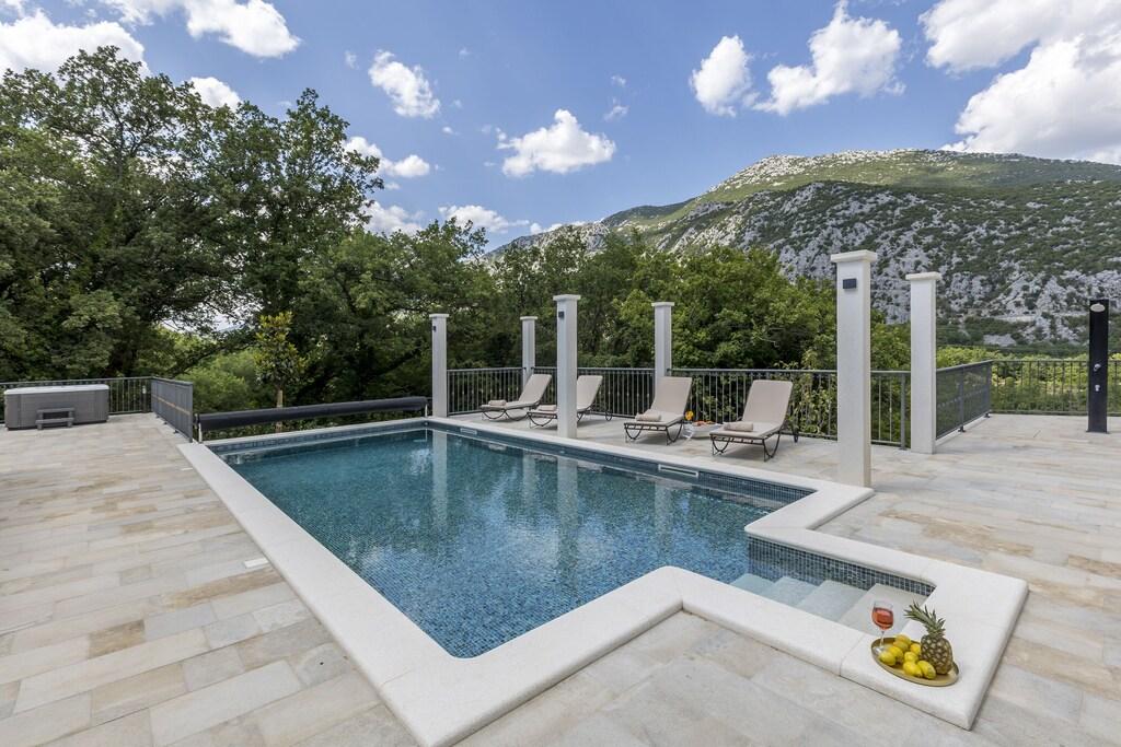 Vilă completă și recent renovată, cu piscină, saună, bucătărie de vară și casă cu 4 dormitoare. Fiecare camera are baie proprie, living, sufragerie si bucatarie. Casa este situată într-un mic sat Zvečanje, la 10 minute de autostrada Blato na Cetini. Omis este departe, 15 min cu mașina, Split 35 minute, Makarska 25 min.