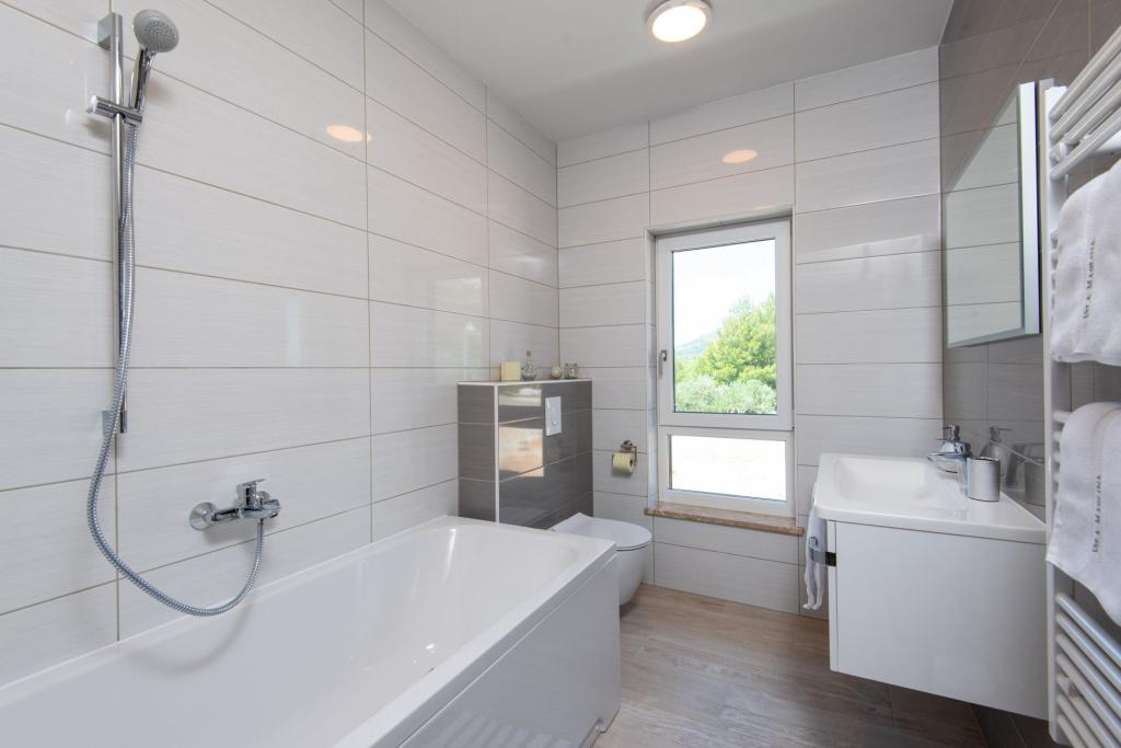 Această locuință oferă un nivel suplimentar de lux precum: B. sub formă de mai mult spațiu și confort, design interior sau stil, arhitectură, echipamente sau experiențe. Această casă de vacanță elegantă cu piscină privată se află într-o locație excelentă. Este situat in apropiere de frumoasa plaja Trstenica cu nisip fin si pietricele. La parter se află o bucătărie mare și un living, un dormitor cu baie proprie și toaletă suplimentară. Scările interioare duc la etajul 1, unde mai sunt trei dormitoare cu băi și o cameră de agrement. Un dormitor duce la un balcon frumos cu vedere frumoasă la mare. Afară, vă puteți răcori în piscină, vă puteți relaxa în jacuzzi și saună, în timp ce copiii se distrează la locul de joacă. Orebić este un loc mic, dar suficient de mare pentru a vă oferi tot ce aveți nevoie în vacanță, de la restaurante la magazine. Explorați zona pitorească. De asemenea, puteți face excursii de o zi la Dubrovnik și insula Korčula.
