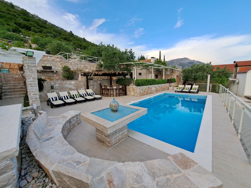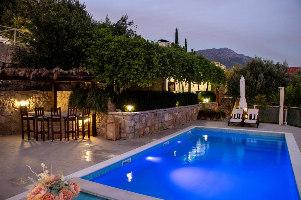 Tăcerea și atmosfera Mediteranei așa cum a fost cândva, intimitatea și simplitatea combinate cu luxul fără pretenții pot fi găsite în satul antic Stanković, construit în secolul al XV-lea, deasupra Orebić. Lemnul închis la culoare în combinație cu piatra albă, nuanțele antice de verde pal de șindrilă și interiorul luxos nu lasă oaspeții indiferenți. Vila găzduiește 14 persoane și oferă o piscină în aer liber, un jacuzzi cu cascadă, o cameră de joacă, o sală de sport, un parc pentru copii, un grătar în aer liber și multă umbră pentru o siesta de după-amiază. Întreaga proprietate de 2000 m2 este ideală pentru o vacanță de familie liniștită și pentru a lega familia și prietenii. Este compus din: 3 case - Azur, Wood, Ston. Total-7 dormitoare. Televizoarele, aparatele de aer condiționat, mașinile de spălat vase și alte aparate te fac să te simți ca acasă. CASA DE LEMN-4 PERSOANE!! Satul Stanković este o bază ideală pentru explorarea insulei sau vă puteți relaxa la o plimbare în natură, cu vedere la mare, care miroase a vegetație mediteraneană. Sunteți la doar 15 minute de oraș și plajă, în timp ce vă bucurați de comoara noastră ascunsă.