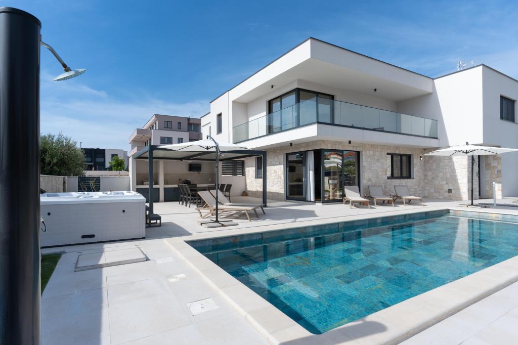 Caracteristicile speciale ale acestei vile sunt o piscină privată încălzită, jacuzzi și o terasă spațioasă de vară. Situată în liniștitul sat litoral Mandre de pe insula Pag, Prestige Villa COMPADRE oferă 4 dormitoare decorate modern și 4 băi cu duș. Bucătăria complet utilată include plită, frigider, mașină de spălat vase, cuptor și toate ustensilele de bucătărie necesare. Oaspeții se pot bucura de grătarul în aer liber, se pot relaxa în zona confortabilă de relaxare sau se pot destinde lângă piscină și jacuzzi. Vila cu aer condiționat oferă în plus TV cu ecran plat, mașină de spălat, intrare privată, minibar și vedere la grădină. Ideală pentru familii sau grupuri, această vilă combină luxul și confortul într-o suprafață elegantă de 230 m².