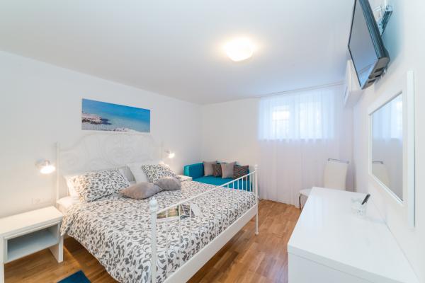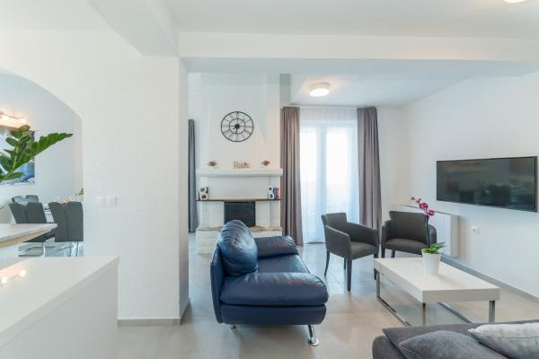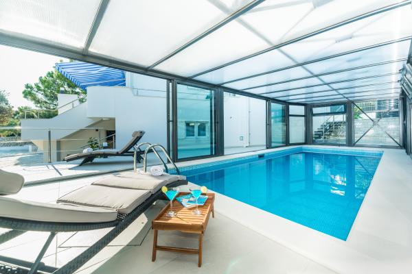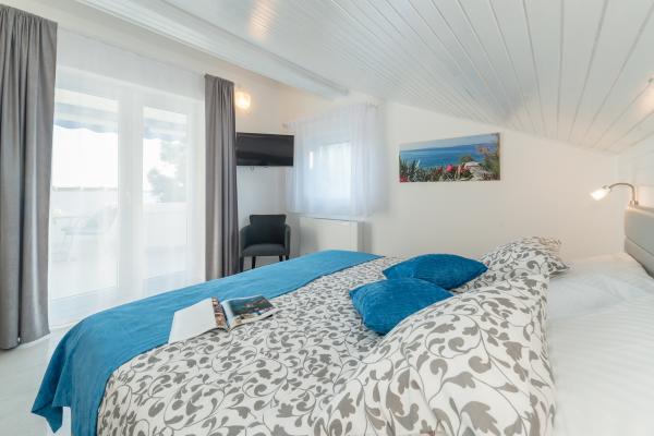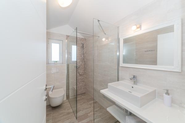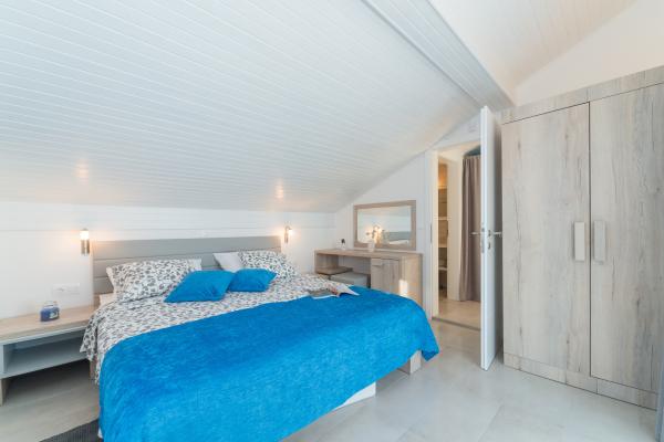 Vila placuta si utilata complet modern cu piscina in Mandre, insula Pag, la 70 km de Zadar. Este la 120 m de centrul orasului. In fata vilei se afla o frumoasa plaja lunga formata din pietricele mici, de-a lungul careia se intinde o promenada. Vila este ideala pentru o vacanta relaxanta cu familia si prietenii. Toate terasele vilei oferă o vedere irezistibilă asupra mării cristaline și a insulelor. În curte există o piscină interioară, încălzită, cu înot în contracurent și masaj, un duș în aer liber și zonă de plajă cu vedere la mare și un loc de relaxare la umbra pinii. Vila are trei etaje (parter, etaj si mansarda), poate gazdui 12 persoane. La fiecare etaj se afla cate o unitate rezidentiala cu intrare proprie, SAT/TV, racire. Fiecare unitate are o bucătărie, sufragerie, living și o terasă cu vedere la mare. Unitatea de la parter are doua dormitoare (4 persoane), o baie si o toaleta. La etaj sunt doua dormitoare, o baie, o toaleta si un alt dormitor cu baie proprie (6 persoane). La mansarda se afla un dormitor (2 persoane) si o baie