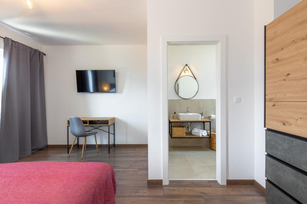 Villa Albina este situată într-o zonă rurală liniștită din Skrpčići, pe insula Krk, foarte aproape de orașul Krk. Unic, renovat astfel încât să-și păstreze autenticitatea, cu multe detalii rustice. Casa ofera o atmosfera foarte romantica, calda si placuta. Această cazare este ideală dacă doriți să vă petreceți vacanța într-un mediu natural și relaxant. Bucurați-vă de frumoasa piscină de 10x4 și de interiorul spațios al unității de cazare, la primul etaj două dormitoare spațioase cu baie proprie și balcon, un living mare și o bucătărie completă cu toate electrocasnicele. Toate camerele casei sunt dotate cu aer condiționat și au internet gratuit, două terase și o grădină spațioasă cu ierburi mediteraneene și măsline ascunse vederii.