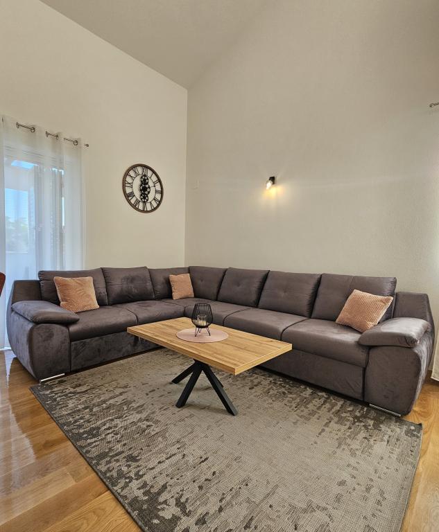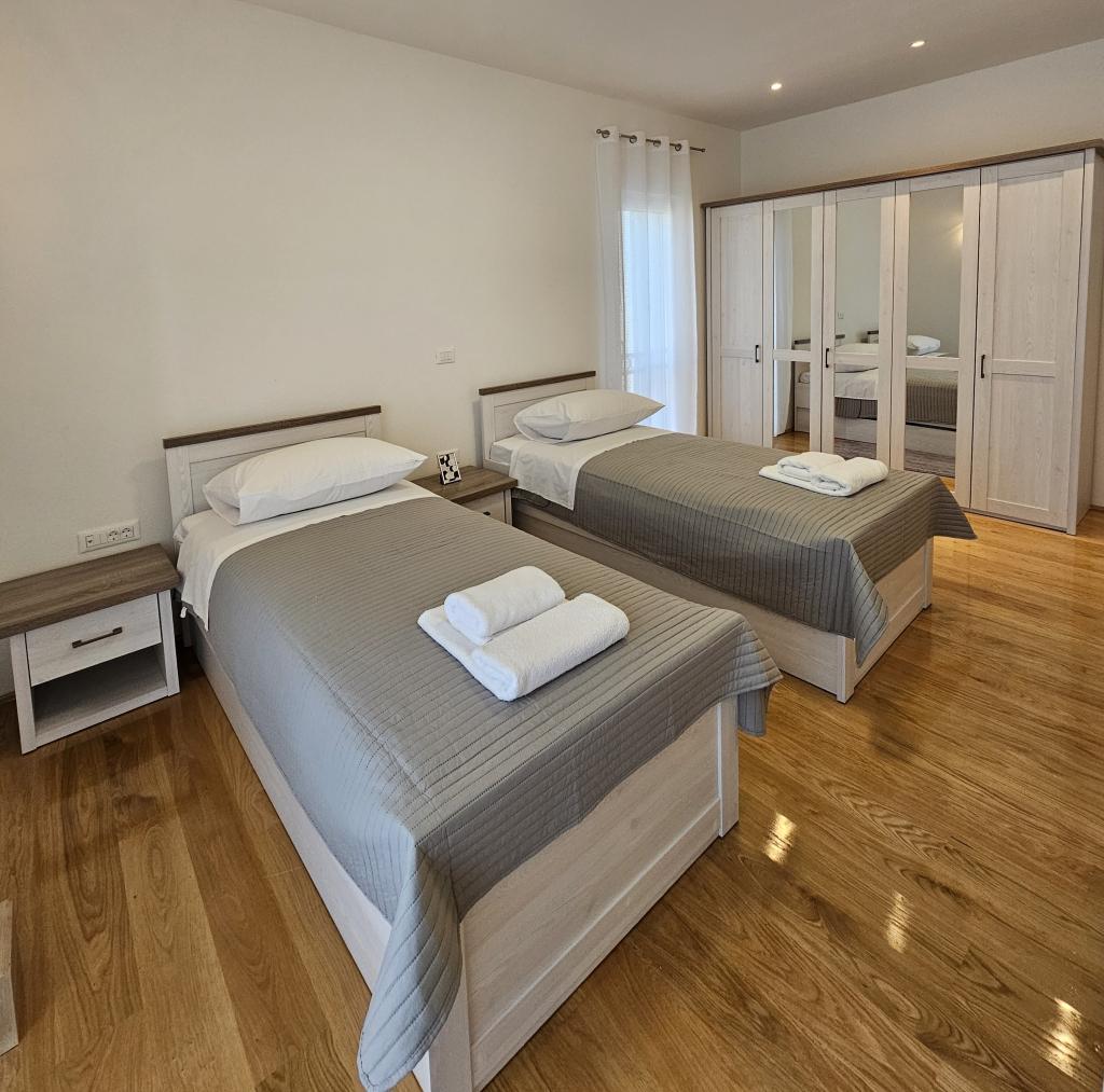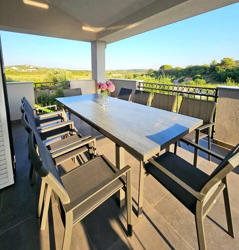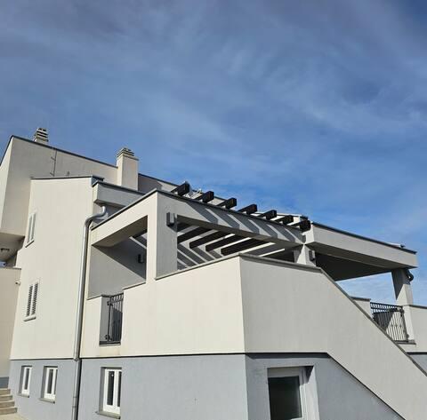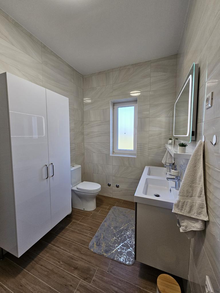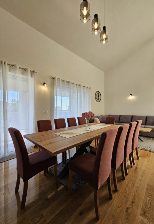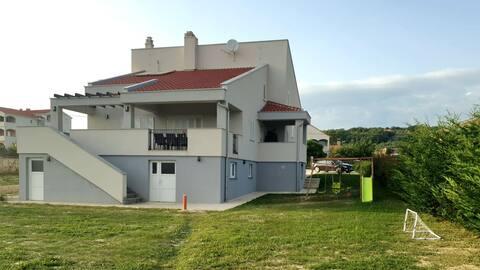 Bine ați venit în casa dvs. de vacanță pentru familie de 324 m² din apropierea orașului Zadar — o casă spațioasă, concepută pentru relaxare și distracție. Părinții se pot relaxa în cada cu hidromasaj privată sau se pot menține activi în sala de sport complet echipată, în timp ce copiii se bucură de propriul loc de joacă în aer liber, sigur. Casa poate găzdui confortabil până la 10 oaspeți și oferă cinci dormitoare mobilate cu grijă, trei băi moderne, două bucătării complet utilate, o zonă de luat masa și un living luminos cu televizor. Un spațiu de lucru dedicat și o spălătorie oferă confort suplimentar pentru sejururi mai lungi. Ieșiți afară în curtea privată complet împrejmuită, care asigură intimitate și securitate, ideală pentru familiile cu copii. Viața în aer liber este punctul culminant al acestei case, cu două balcoane cu șezlonguri și o terasă mare cu grătar, o zonă spațioasă de luat masa în aer liber și o zonă relaxantă pentru plajă — perfectă pentru a vă bucura de serile calde dalmate. Parcarea privată gratuită este disponibilă la fața locului.