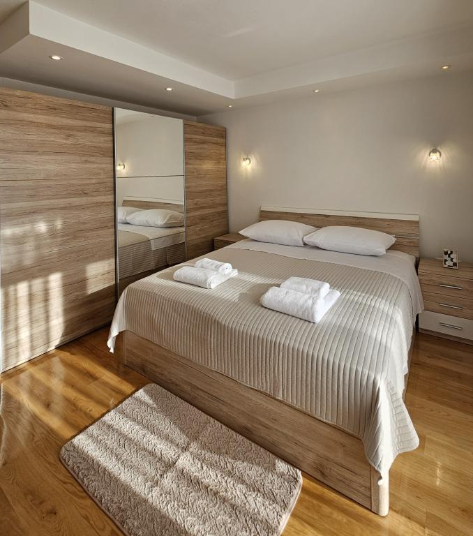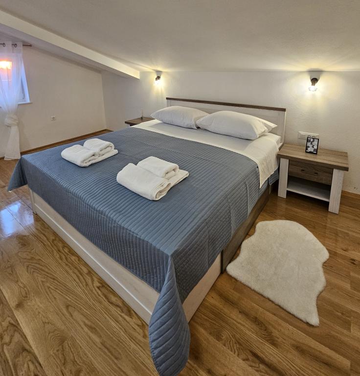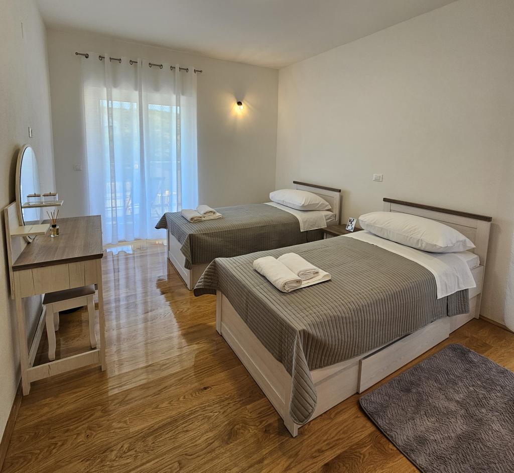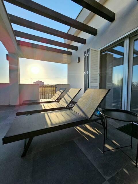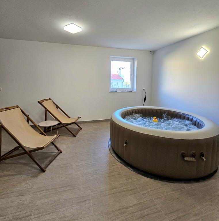 Bine ați venit în casa dvs. de vacanță pentru familie de 324 m² din apropierea orașului Zadar — o casă spațioasă, concepută pentru relaxare și distracție. Părinții se pot relaxa în cada cu hidromasaj privată sau se pot menține activi în sala de sport complet echipată, în timp ce copiii se bucură de propriul loc de joacă în aer liber, sigur. Casa poate găzdui confortabil până la 10 oaspeți și oferă cinci dormitoare mobilate cu grijă, trei băi moderne, două bucătării complet utilate, o zonă de luat masa și un living luminos cu televizor. Un spațiu de lucru dedicat și o spălătorie oferă confort suplimentar pentru sejururi mai lungi. Ieșiți afară în curtea privată complet împrejmuită, care asigură intimitate și securitate, ideală pentru familiile cu copii. Viața în aer liber este punctul culminant al acestei case, cu două balcoane cu șezlonguri și o terasă mare cu grătar, o zonă spațioasă de luat masa în aer liber și o zonă relaxantă pentru plajă — perfectă pentru a vă bucura de serile calde dalmate. Parcarea privată gratuită este disponibilă la fața locului.