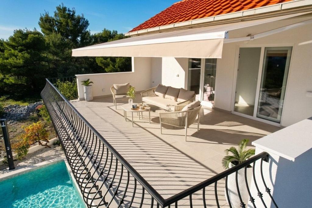 Taxa de rezidenta este inclusa in pret.Această vilă elegantă oferă combinația perfectă de confort și stil pe două etaje spațioase. Dispune de patru dormitoare frumos amenajate - două amplasate convenabil la parter și două la etajul superior - împreună cu trei băi moderne. Parterul dispune de o bucătărie elegantă, complet utilată, și un living confortabil, ideal pentru relaxare sau divertisment. La etaj, veți găsi o terasă spațioasă, cu o zonă de relaxare confortabilă și o umbrelă de soare, perfectă pentru a vă bucura de seri calde sau pentru a admira priveliștea. Zona exterioară este concepută pentru relaxare și socializare, cu o piscină privată cu șezlonguri, o zonă de relaxare confortabilă lângă șemineu și o masă mare în aer liber, care poate găzdui confortabil până la opt oaspeți.