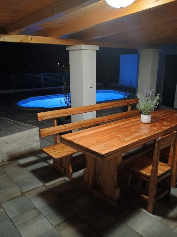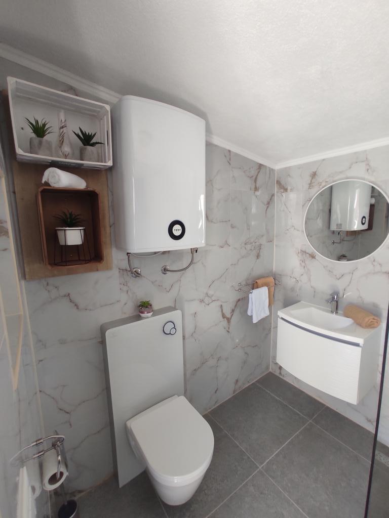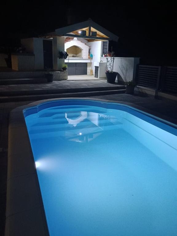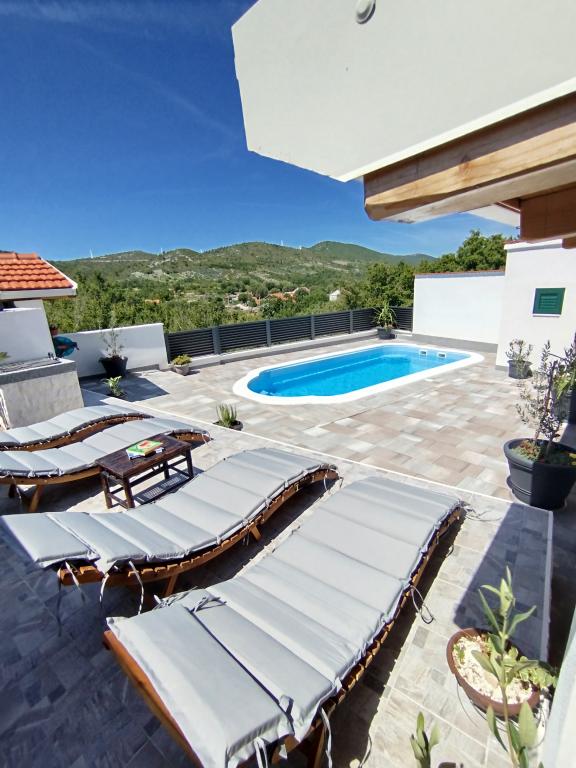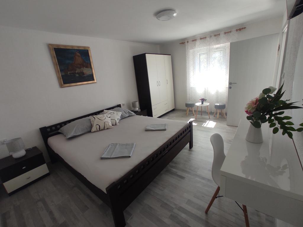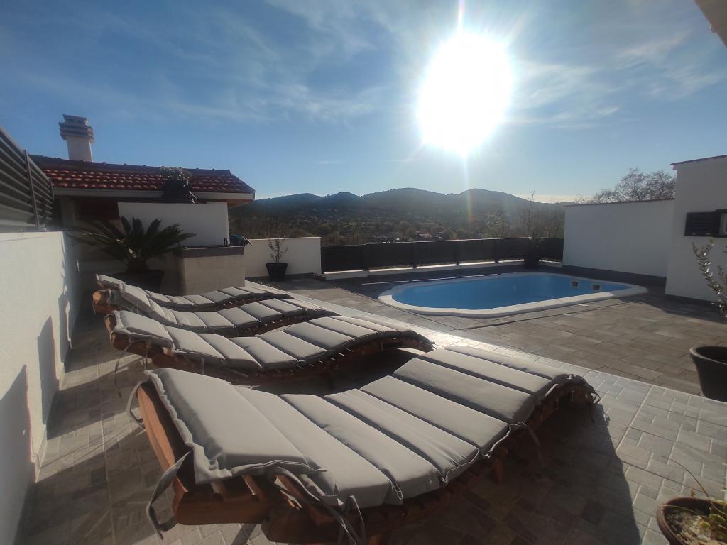 Casa este situată în satul liniștit Ljubitovica, la 20 km de orașul UNESCO Trogir și la 18 km de prima plajă. Dacă vrei să te bucuri înconjurat de natură și în intimitate, casa noastră este ideală pentru tine. Casa este formata dintr-un parter si un etaj, legate printr-o scara exterioara. La parter (curte) se afla o piscina incalzita, un gratar exterior, o toaleta cu dus iar in partea interioara o bucatarie (vase, frigider, masina de spalat vase, cuptor) cu un living cu aer conditionat. La primul etaj sunt doua dormitoare. Fiecare cameră este dotată cu aer condiționat și un smart TV. Camerele au paturi duble si este disponibil un pat suplimentar pentru o persoana (in fiecare camera). La cerere, fără costuri suplimentare, este posibil să se ofere oaspeților un pătuț de călătorie. Între dormitoare există o toaletă cu duș și o mașină de spălat (prosoape furnizate). În fața camerei există o terasă mare. Este asigurată parcare precum și mobilier de vară de exterior pentru odihnă și luat masa (partea acoperită a curții).