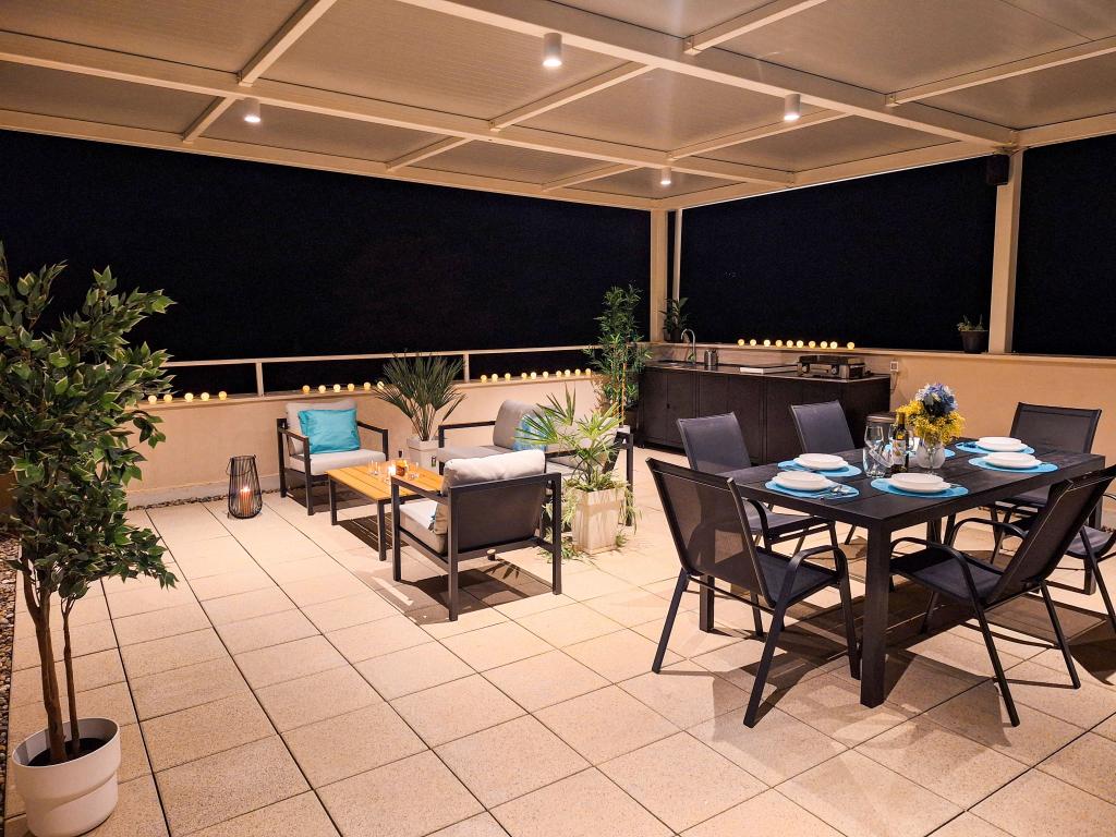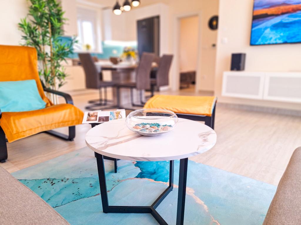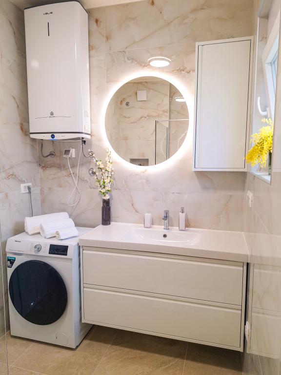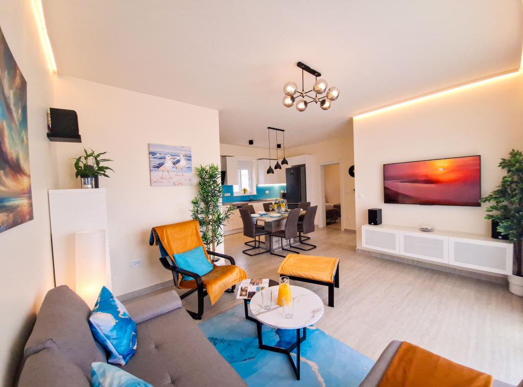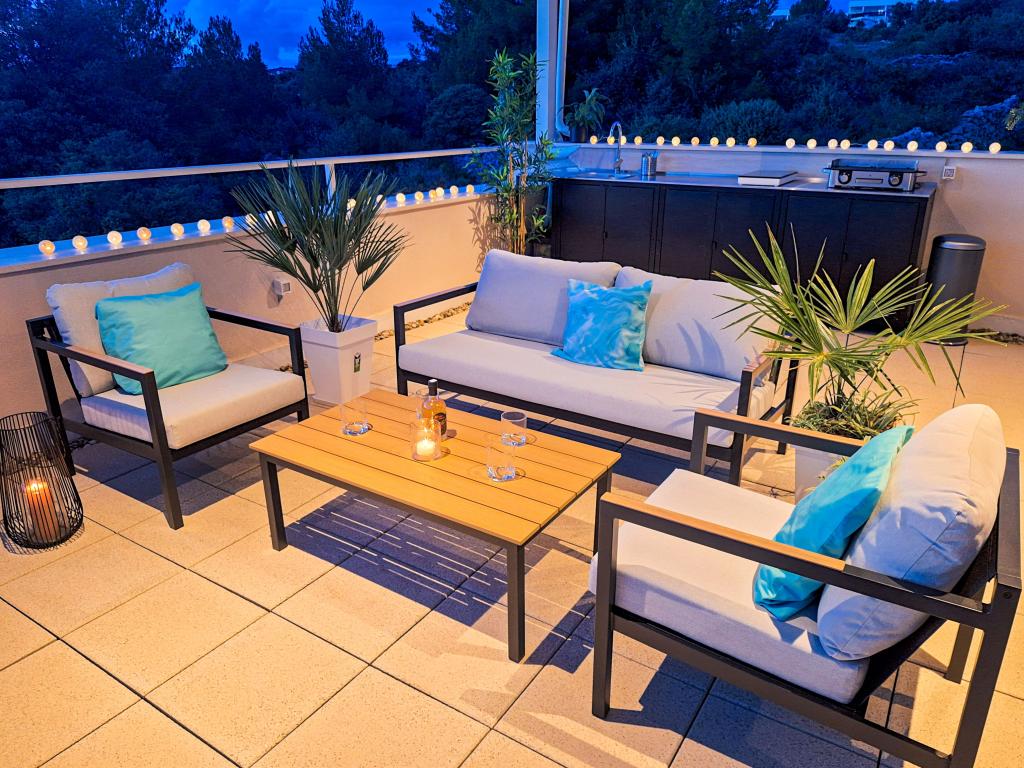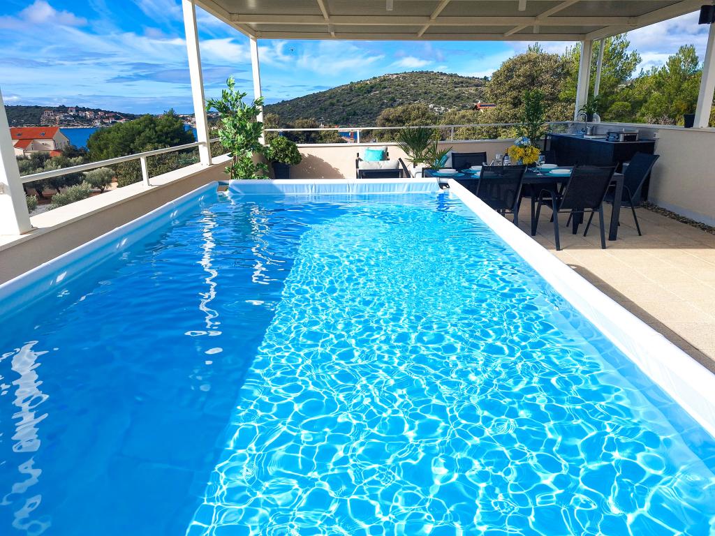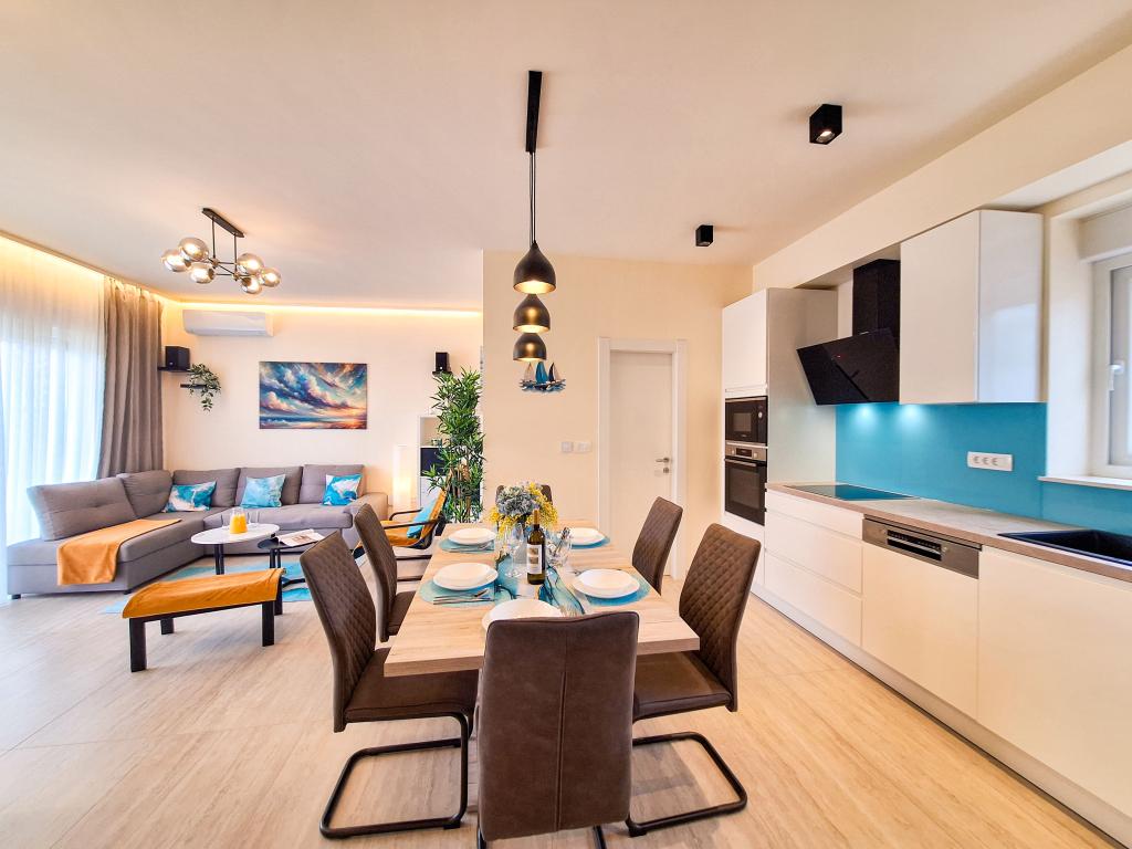 Bine ați venit la Tesa, o vilă modernă nouă, unde vă puteți bucura pe deplin alături de familie sau prieteni. Această vilă elegantă pentru până la 6 oaspeți oferă o bucătărie complet utilată, o baie modernă cu duș walk-in și mașină de spălat/uscător, precum și aer condiționat și televizor în fiecare cameră. Terasa de pe acoperiș, cu vedere la mare și insule, are o piscină încălzită, un duș exterior și șezlonguri pentru relaxare în timpul zilei cu cartea preferată sau muzică de la boxe exterioare și pentru a vă bucura de băutura preferată seara sub stele. Terasa cu bucătărie complet utilată (grătar, aragaz, frigider), masă și zonă de relaxare vă oferă oportunitatea de a petrece întreaga zi în aer liber. Gătitul cu o briză plăcută de la mare va face această experiență extrem de plăcută. Locația centrală perfectă, cu toate facilitățile esențiale și plaje frumoase la doar 200 de metri distanță, fiind înconjurată de verdeață și o grădină frumos amenajată, creată pentru relaxare, vă va oferi o vacanță de neuitat.