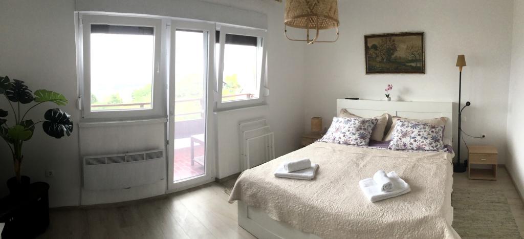 Casa de vacanță complet utilată este situată pe un deal înconjurat de verdeață și flori, cu o priveliște frumoasă asupra Zagrebului și a împrejurimilor. Capacitatea este de 8 persoane. Se compune din două dormitoare; un pat dublu și un pat de o persoană, iar în a doua cameră un pat dublu și un pat dublu cu saltele separate și o canapea în sufragerie. Două băi. Bucătărie complet utilată cu frigider cu congelator mic, mașină de spălat vase, aparat de cafea cu filtru, cuptor... și masă. Saună finlandeză mare. Darts electrice. Terasă mare acoperită, cu masă și mobilier de grădină, oferind o priveliște frumoasă, ciripit de păsări și un grătar mare. Parcarea pentru două mașini și Wi-Fi-ul sunt incluse în prețul de închiriere. În lunile de vară, sunt disponibile un jacuzzi și șezlonguri suplimentare. În zonă puteți face drumeții, plimbări, mers cu bicicleta, pescuit, vizita locul cu cea mai rapidă mașină din lume, Adrenaline Park și vă puteți bucura de gastronomia locală.