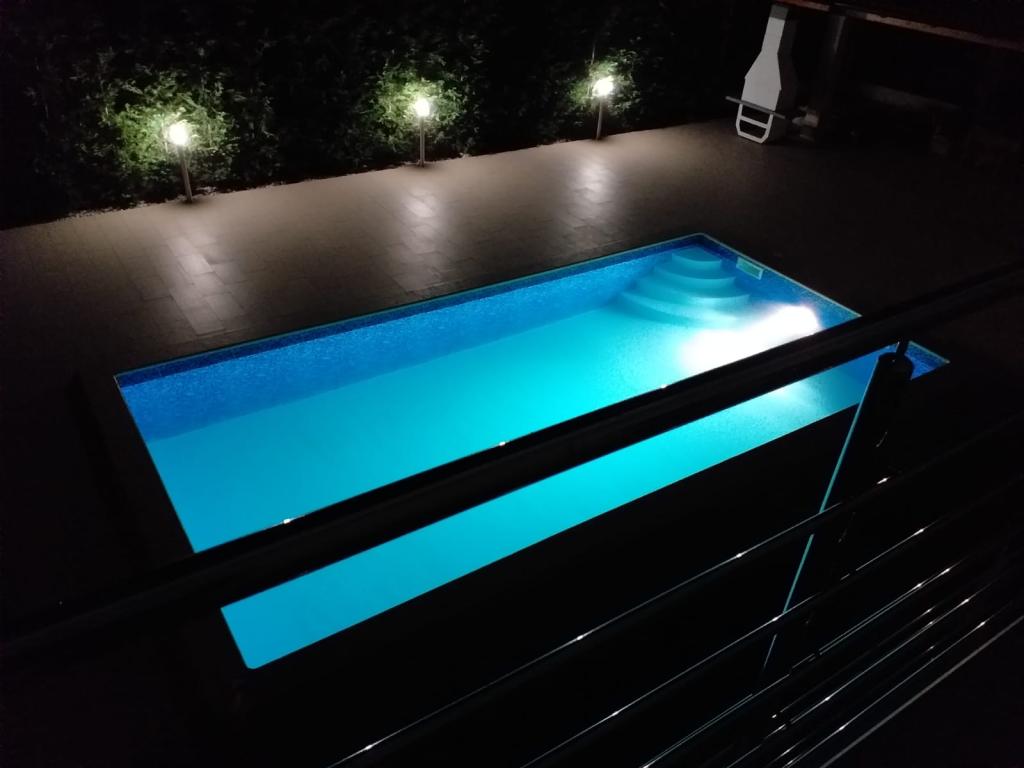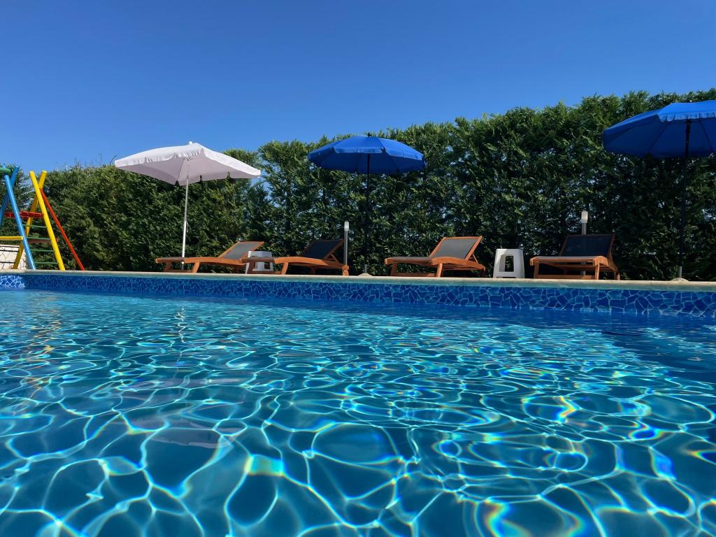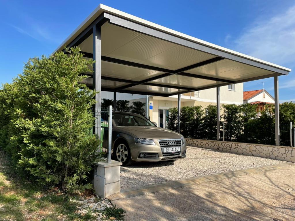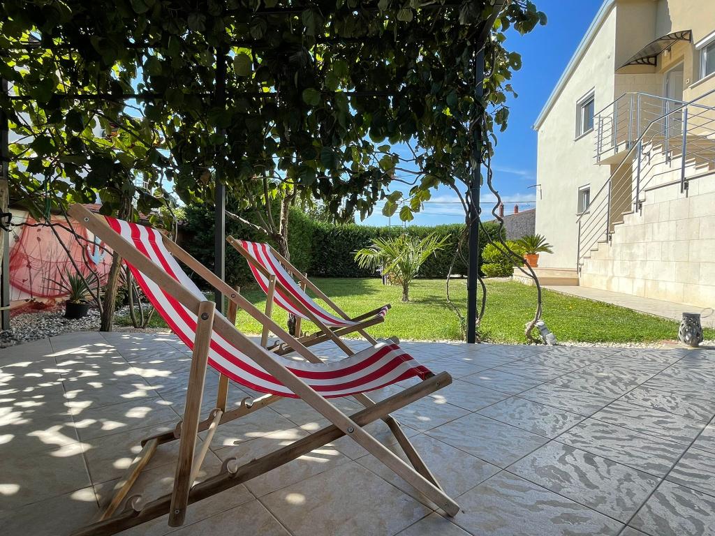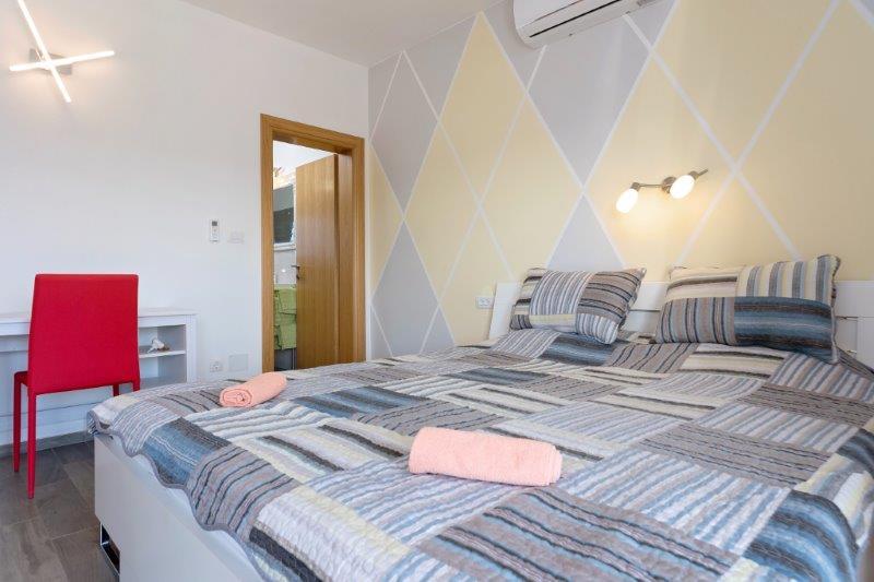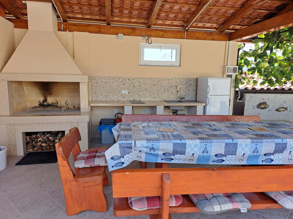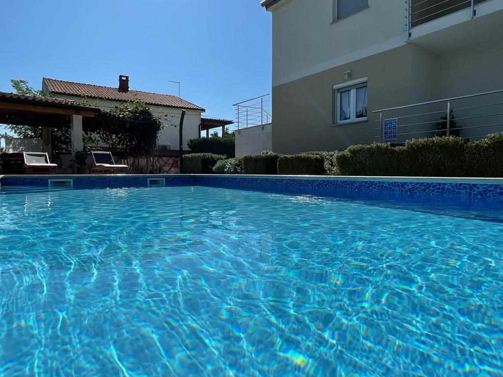 Ne aflăm în micul oraș Kaštelir, la 10 km de Poreč. Casa este formată din două apartamente separate, unul la parter, celălalt la primul etaj, casa este închiriată în întregime. Fiecare apartament este compus din living, bucatarie, doua dormitoare, fiecare cu baie proprie. Fiecare apartament are 3 aparate de aer conditionat, unul in living si unul in fiecare camera. Apartamentul este dotat cu tot ce este necesar pentru un sejur placut. În exterior există un loc de joacă pentru copii cu leagăne, o trambulină și o masă de tenis de masă. Curtea este complet împrejmuită, astfel încât să vă puteți aduce câinele, percepem o taxă de 12 euro pe zi pentru câini. In exterior mai avem o piscina de 8*4m, sezlonguri, umbrele de soare si o bucatarie de vara cu gratar. In fata apartamentului avem 6 locuri de parcare, dintre care 2 sunt acoperite Din cauza altor obligatii cu noi in lunile iulie si august se poate face rezervare doar de duminica pana duminica, iar in celelalte luni minimul este de 5 zile iar ora de sosire poate fi in orice zi a saptamanii. Casa este ideala pentru 8 persoane, dar poate gazdui si 10 persoane. Pentru o persoana suplimentara, avem o taxa de 25€ de persoana.