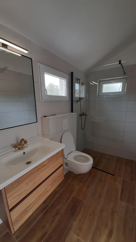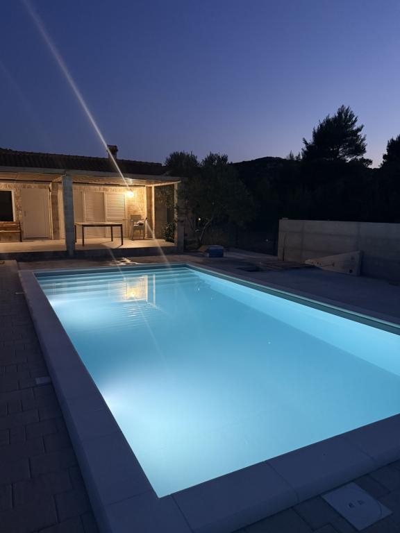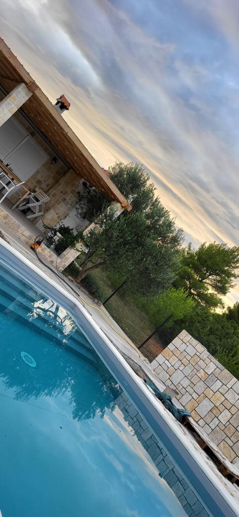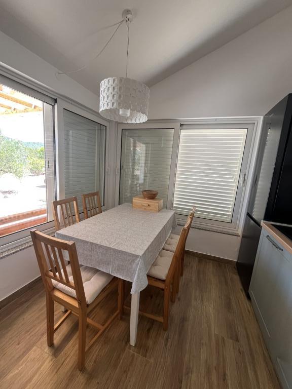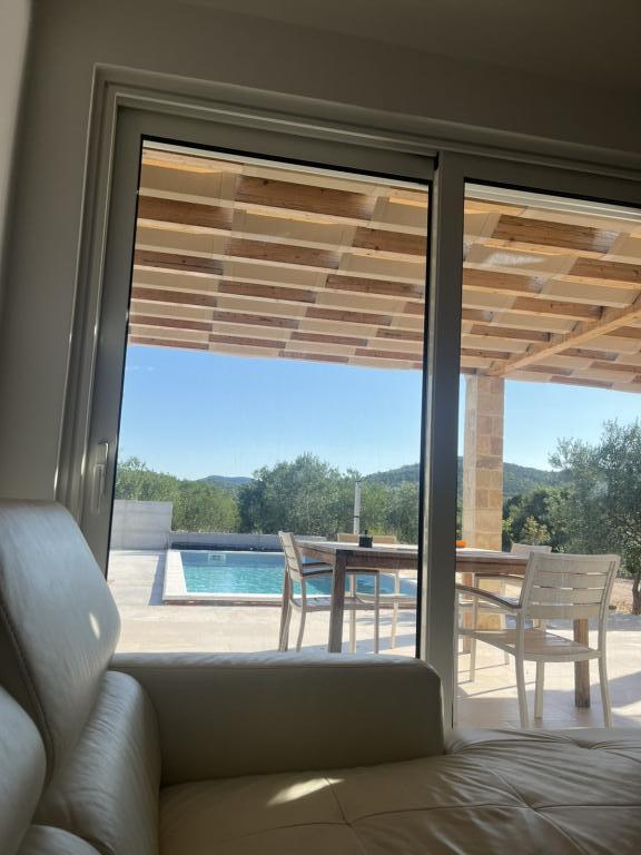 Vilă complet utilată cu piscină încălzită de 4x8, duș solar, șezlonguri, scaune, terasă mare și grătar încorporat. Casa cu un singur etaj este situată în interiorul țării, între Tisno și Tribunj, în satul Ivinj. Are o grădină mare de 3500m2, cu 80 de măslini, smochini, multă lavandă și alte flori mediteraneene,... Distanța de centrul orașului este de 3 km, este situată de-a lungul drumului regional Vodice - Tisno, Murter. Este aproape de Parcul Național Kornati și de Cascadele Krka.