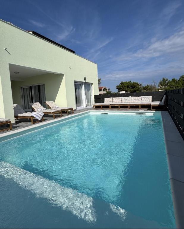 Casă de vacanță cu piscină, vedere la mare și la Velebit - vacanță perfectă în liniște și pace! Bucurați-vă de pace și intimitate deplină în această frumoasă casă de vacanță situată în afara centrului, ideală pentru o vacanță în familie sau relaxare cu prietenii! Locație Casa este situată într-un sat liniștit, departe de zgomotul orașului și, în același timp, la doar: • 500 m de plaja principală • 500 m de faimoasa plajă cu nisip Rajska • 3 km de centrul orașului Despre casă Casa oferă tot ce aveți nevoie pentru un sejur confortabil și relaxant: • 4 dormitoare spațioase pentru 8 persoane • 2 băi moderne • 1 toaletă suplimentară • Bucătărie și living complet utilate • Aer condiționat, Wi-Fi, TV prin satelit Facilități exterioare și suplimentare • Piscină privată cu șezlonguri • Vedere frumoasă la mare și la muntele Velebit • Terasă spațioasă și grătar • Parcare privată • Ideală pentru familii cu copii și iubitori de natură Mediul liniștit face din această casă alegerea perfectă pentru cei care doresc să scape de stresul cotidian și să se bucure de frumusețile naturale, mare și munte. Rezervați-vă astăzi o întâlnire și asigurați-vă vacanța perfectă!