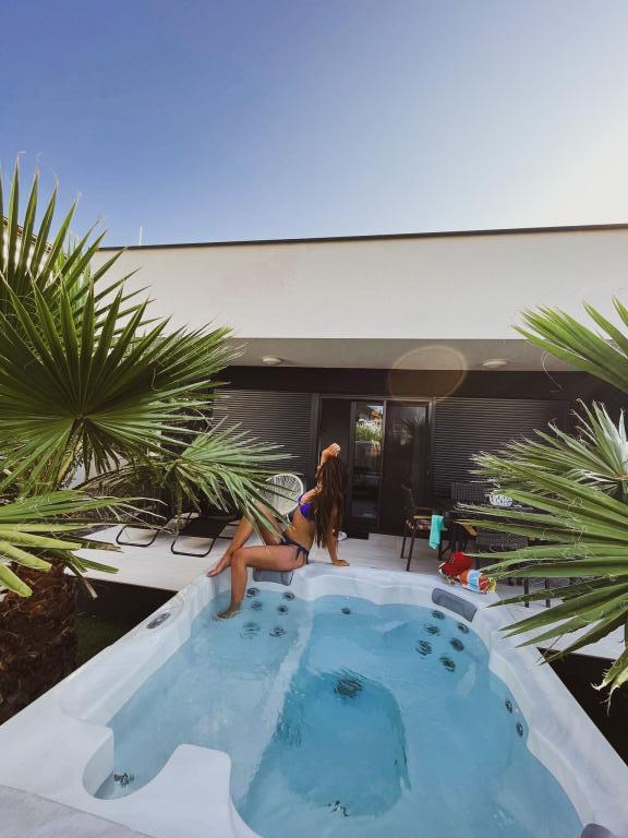 Casa este mobilata nou, 100m2 are 3 dormitoare, 2 cu paturi box, a treia camera cu doua paturi separate, bucatarie cu toate electrocasnicele, masina de spalat vase, cuptor, aragaz, frigider cu congelator, o baie, si dus exterior, jacuzzi in curte. , parcare pazita, la 350m la mare, la 350m la centru, toate facilitatile sunt in imediata apropiere, puteti vizita totul fara masina, vecini sunt în imediata apropiere, oaspetele este de așteptat să respecte regulile casei Gazda nu locuiește în aceeași casă, gazda are grijă de calitatea apei din jacuzzi